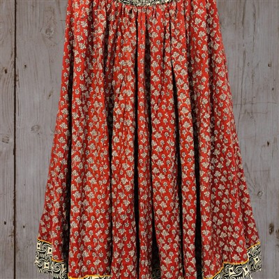 Hand Block Printed Rust Orange Skirt with Abstract Border Detail