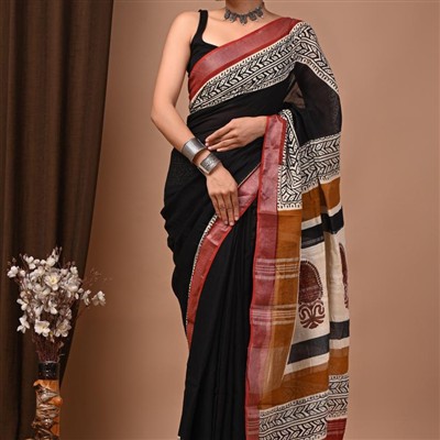Perfect for special occasions or casual gatherings, this saree captures the essence of Indian craftsmanship and heritage. Embrace the beauty of traditional Indian textiles with this premium handcrafted piece from Blockart.