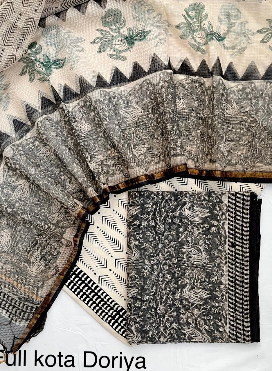 Experience the delicate touch of artisan craftsmanship with this beautiful handcrafted suit, made from a light silk cotton Kota blend. This fabric combines the airy, lightweight feel of Kota with the soft drape and subtle sheen of silk and the breathable comfort of cotton, creating a truly exquisite material. The "handcrafted" aspect implies meticulous attention to detail, often featuring hand-done embellishments like delicate embroidery, appliqué, or subtle handblock prints. The prints, if present, are typically sophisticated and understated, designed to enhance the fabric's natural grace. This suit is perfect for semi-formal events, sophisticated gatherings, or for anyone seeking a unique blend of traditional artistry and modern elegance.