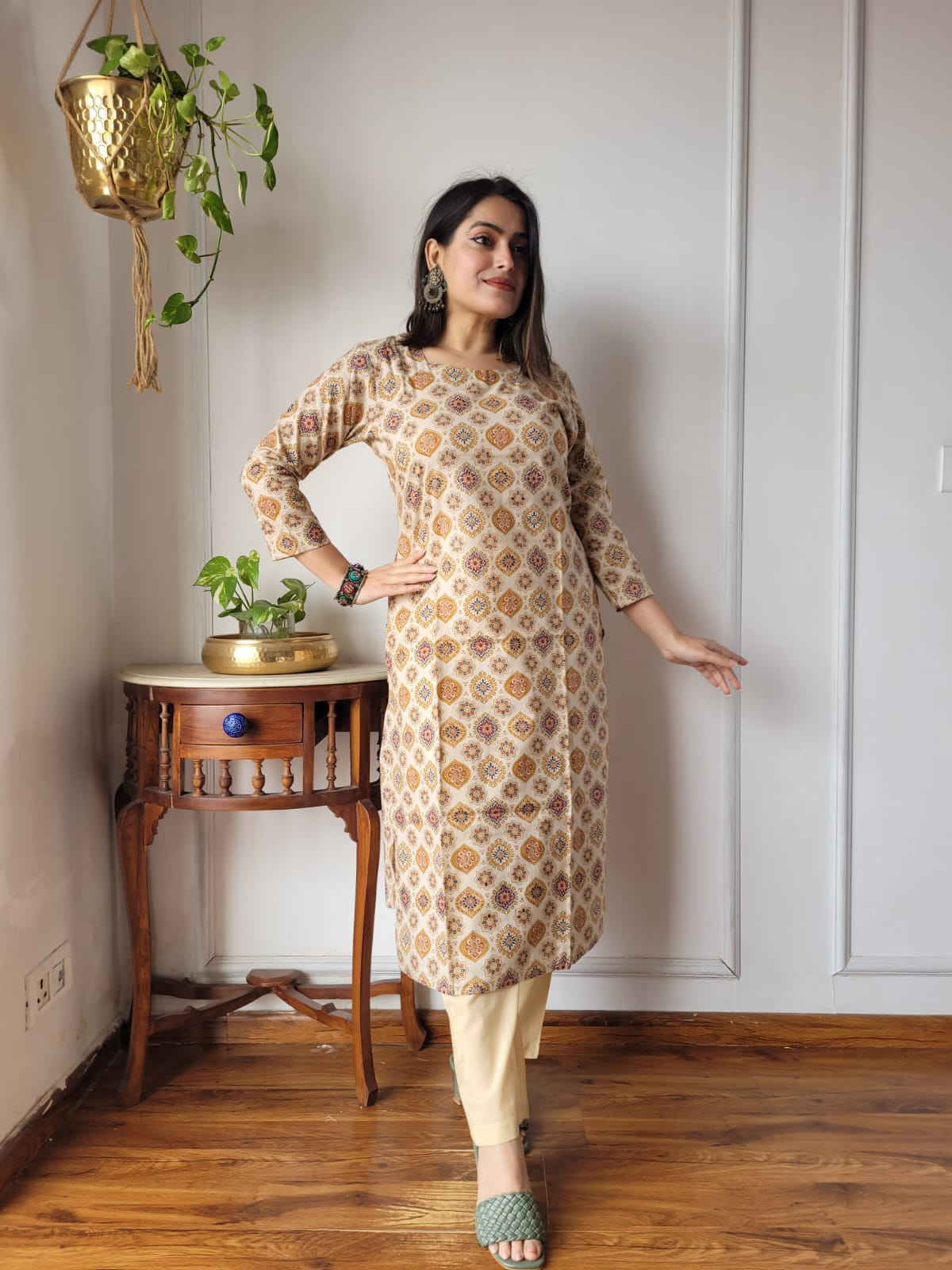 Perfect for casual gatherings or festive occasions, this outfit seamlessly combines tradition with modern sensibilities. Pair it with your favorite juttis for a polished look or keep it breezy with minimal accessories. Crafted from high-quality cotton fabric, this set promises durability and a soft touch against the skin, making it a cherished addition to your wardrobe.
