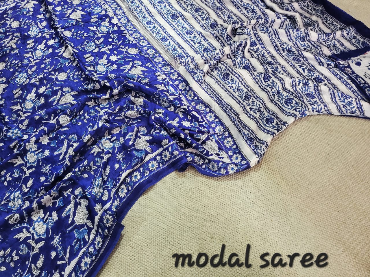 Handblock Print Modal Silk fabric Saree
