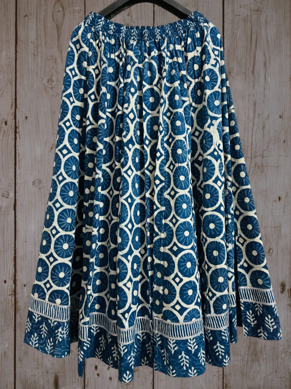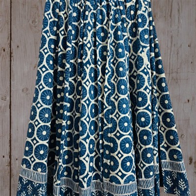 Indigo Diamond Hand Block Printed Cotton Skirt with Leaf Border