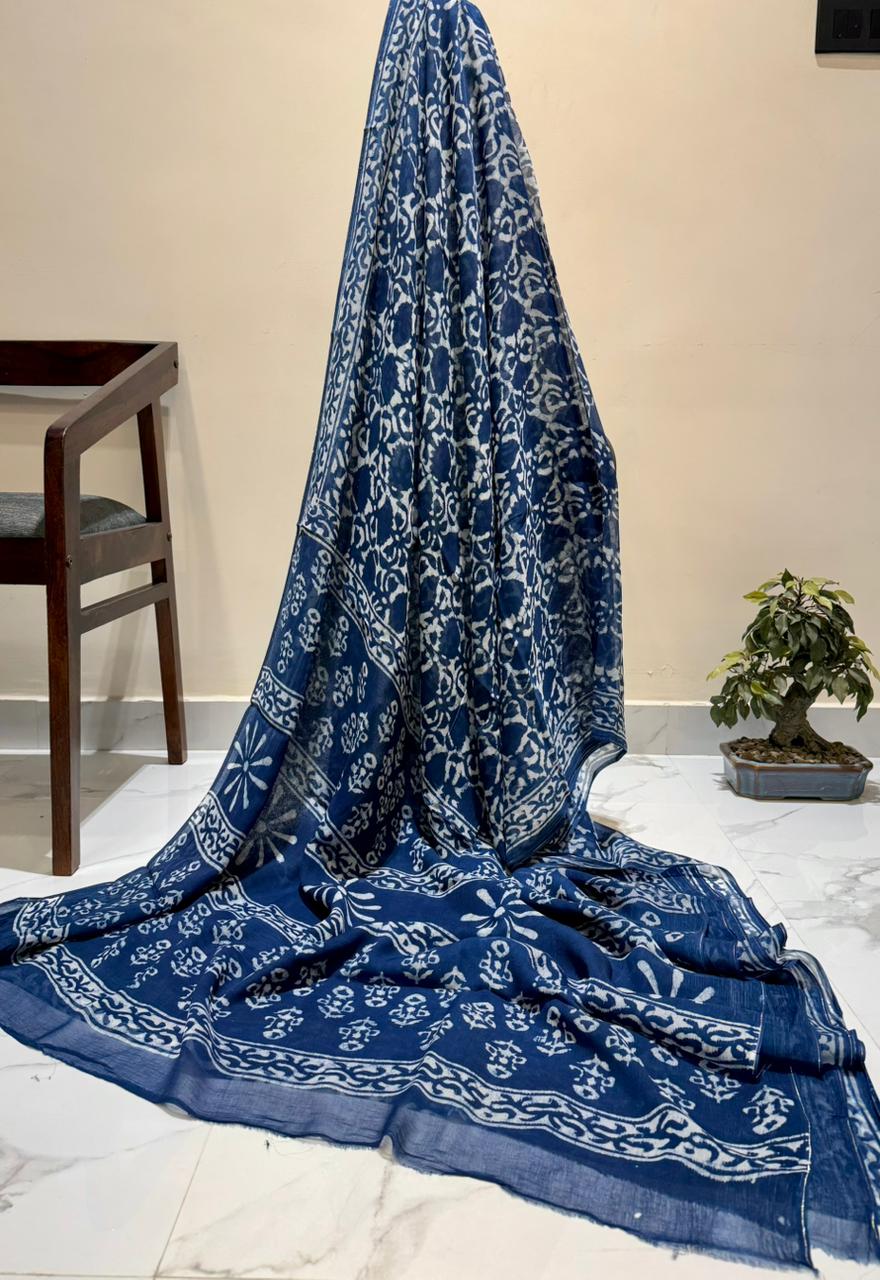 Wrap yourself in elegance with this exquisite Indigo Floral Hand Block Printed Chiffon Saree from Blockart. Crafted from Pure Double Diamond chiffon with bemberg silk, this saree features intricate floral patterns that showcase the artistry of hand block printing. The lightweight and soft fabric drapes beautifully, offering both comfort and style. Perfect for special occasions or everyday luxury.