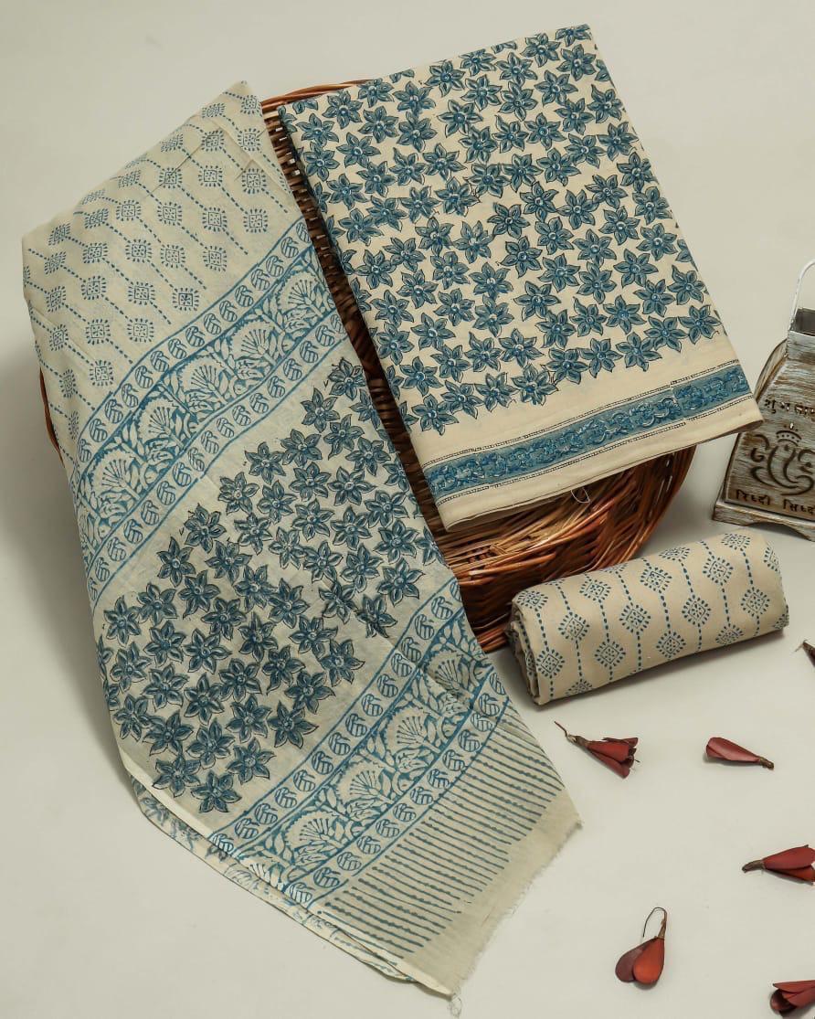 Hand block printed cotton suit with cotton duptta dress material with 3 piece set