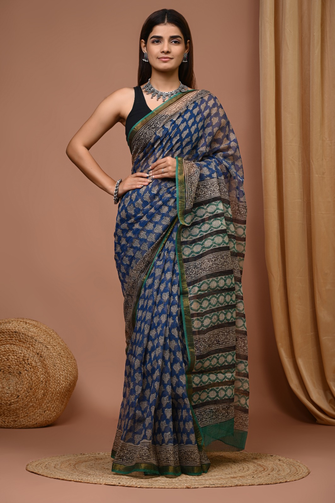 Experience the artistry of hand block printing with our Kota Doria saree collection, a blend of heritage and style.