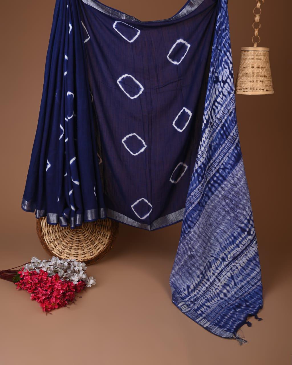 Crafted with a rich indigo hue, this exquisite linen saree presents a captivating display of geometric patterns that dance across its surface. The interplay of crisp white designs against the deep blue creates a visual harmony, perfect for those who appreciate the beauty of artisan textiles. Each piece embodies meticulous hand block printing techniques, ensuring that no two sarees are alike.