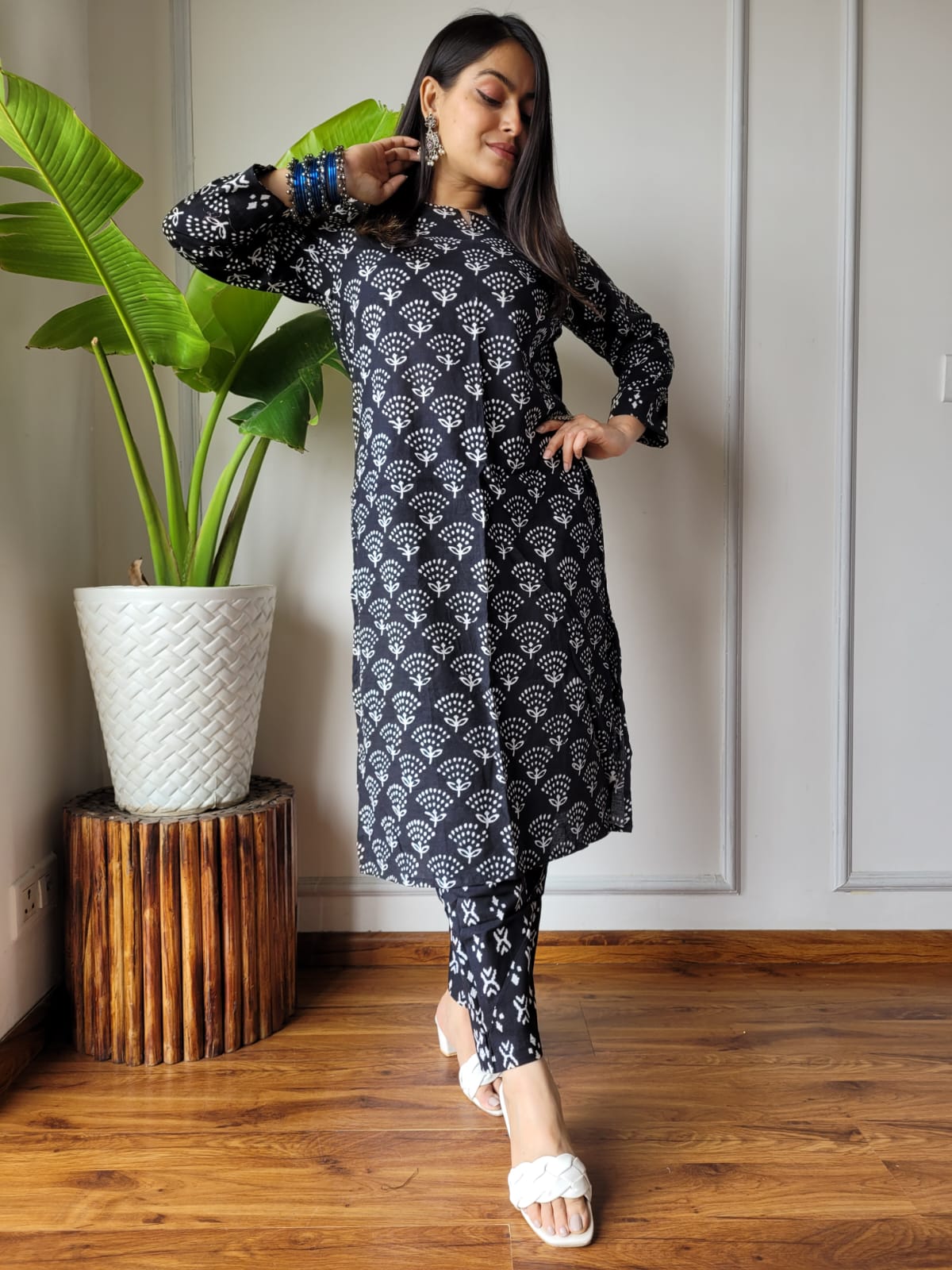 Bring a slice of heritage into your everyday style and let the Indigo Leaf Motif Kurti Set be a go-to choice for various occasions!