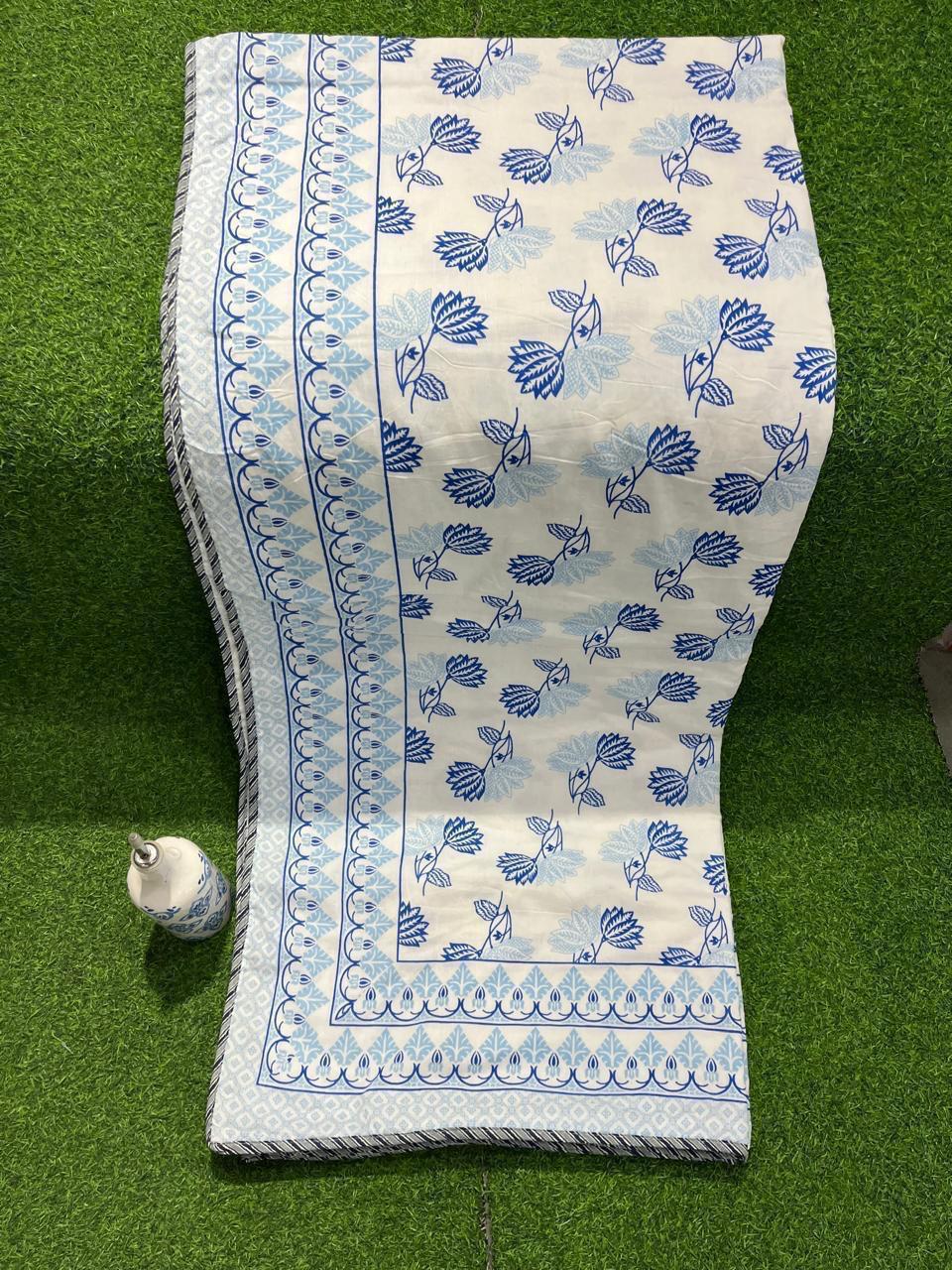 Each piece of our Ivory Cobalt Floral Cotton Dohar tells a tale of tradition, where artisanal skill meets modern design. The soft ivory background is beautifully adorned with vibrant cobalt and sky blue floral patterns, bringing a fresh touch to your home. This reversible dohars are perfect for cozy evenings or simply adding charm to your decor.