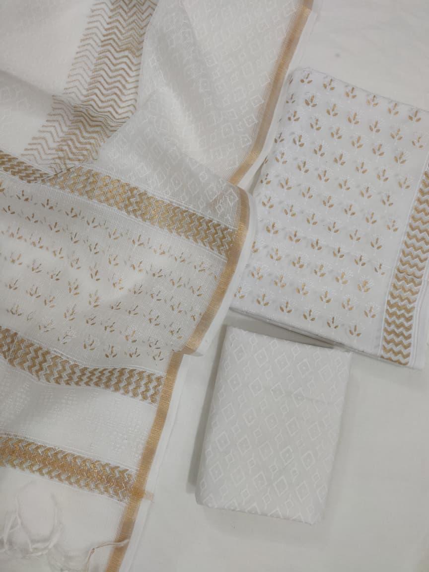 The generous 2.5 meters of cotton for both the top and bottom provides versatility, allowing you to explore various styles. Meanwhile, the Kota Doria dupatta adds an airy layer, enhancing the overall look with its intricate blend of tradition and finesse.