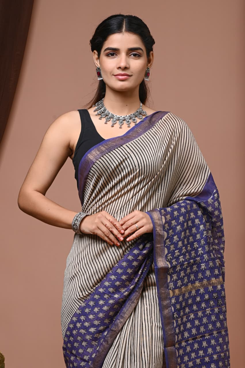 In a world where the rush of modern life often overshadows the beauty of artisanal craftsmanship, this saree reintroduces you to the gentle allure of traditional elegance. Crafted from a lightweight Maheshwari silk, its smooth texture glides against your skin, offering a comfortable embrace with every wear.