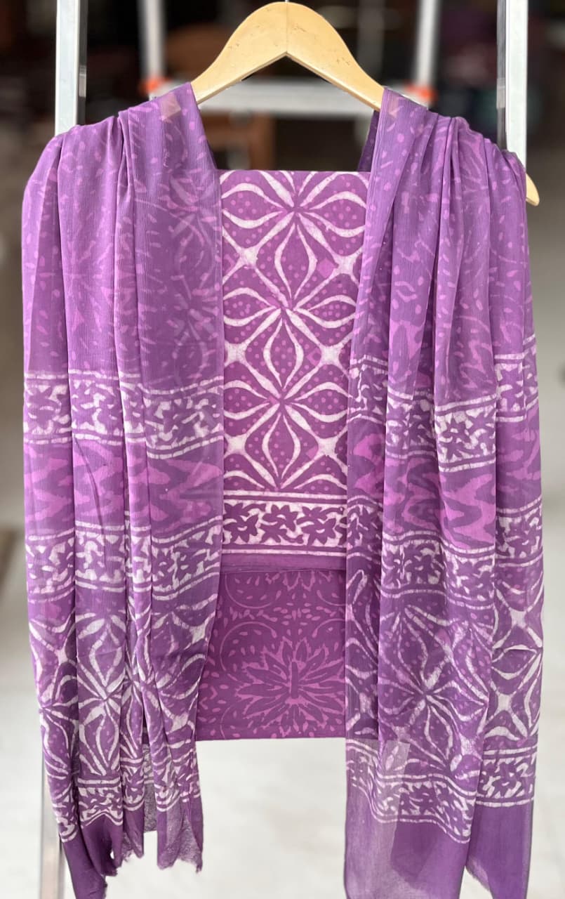 This cotton dress material with chiffon dupatta is a perfect blend of tradition and modern style, allowing you to create a customized outfit that reflects elegance and comfort.