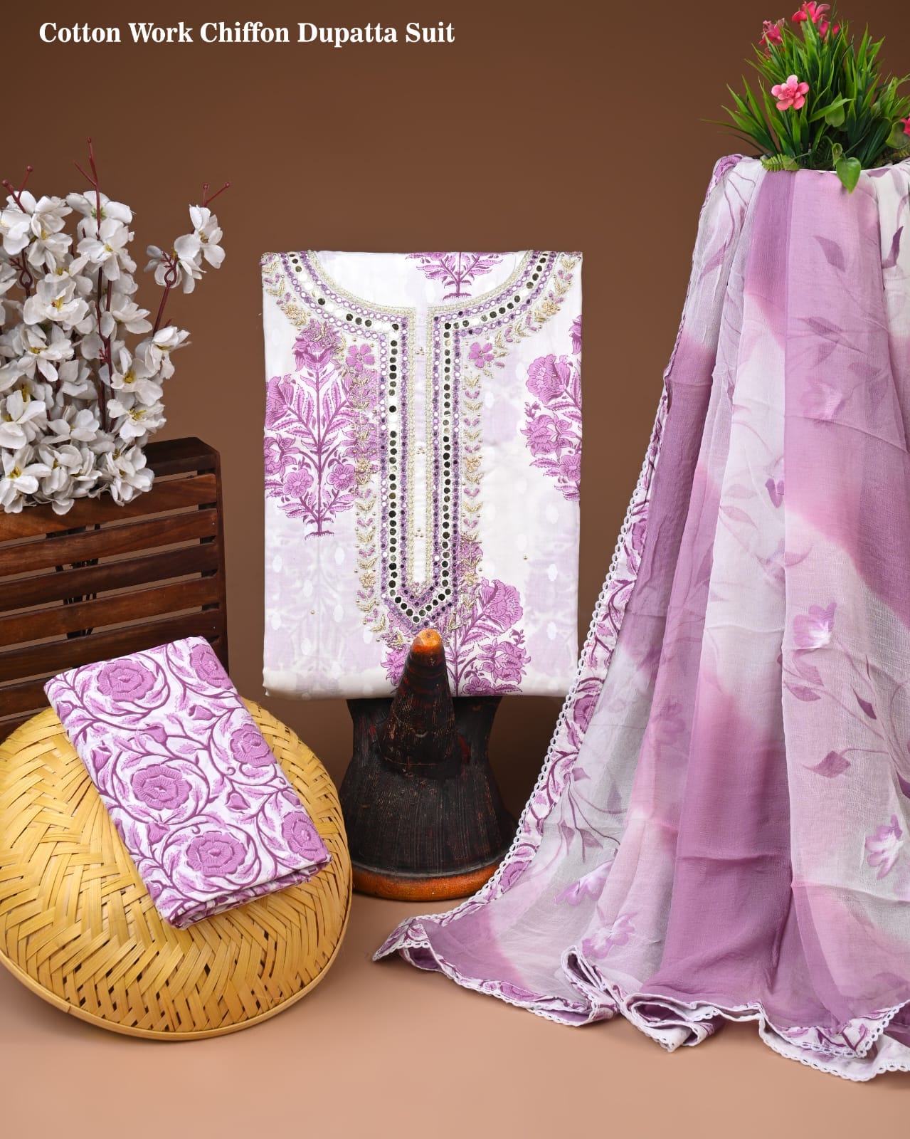 Rooted in the artisanal heritage of Indian textiles, the Lavender Blossom Gota Patti Cotton Suit Set embodies a delicate blend of elegance and tradition. The soft cotton fabric is lightweight and breathable, ensuring you feel comfortable whether you’re attending a family gathering or enjoying a festive celebration.