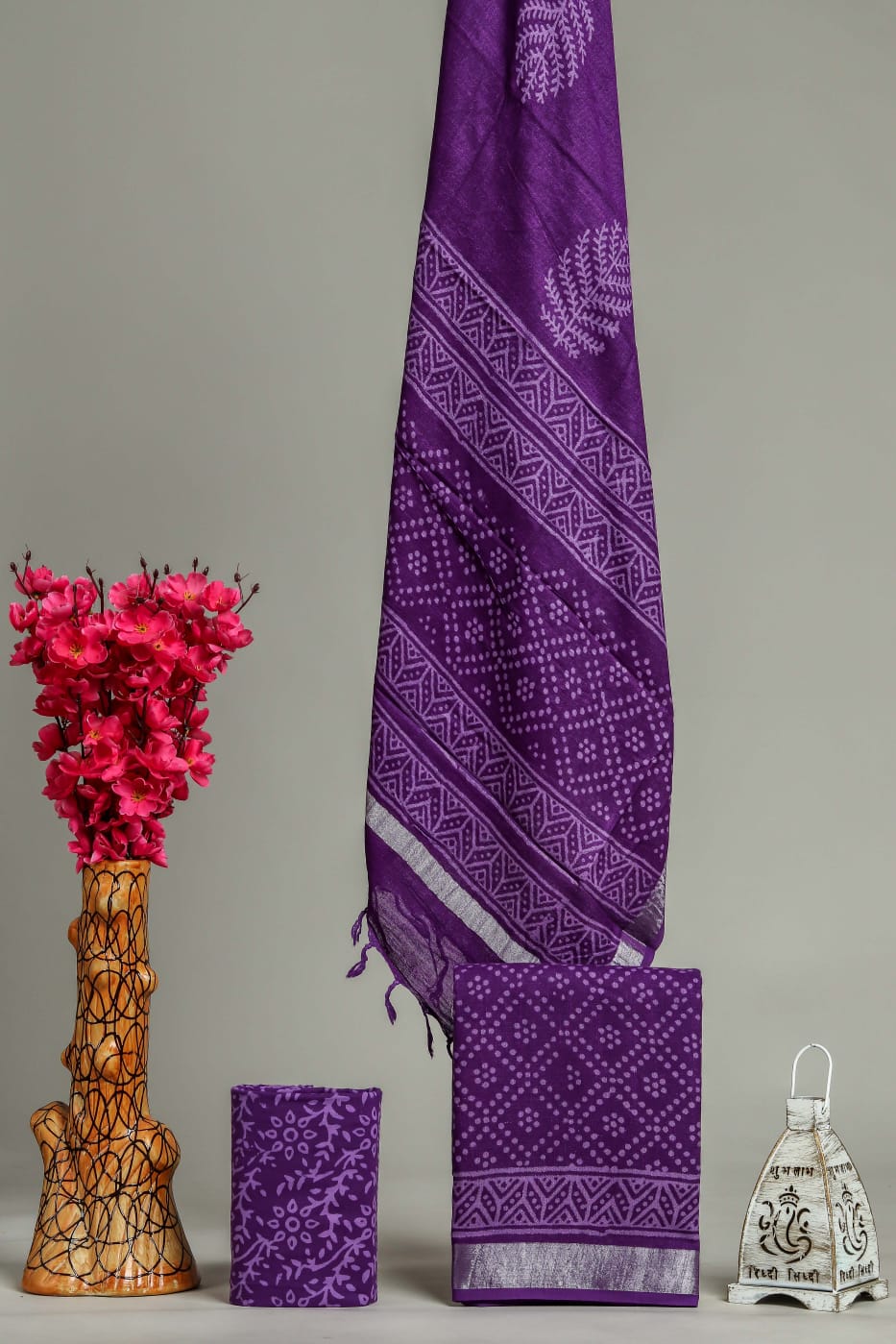 Lavender Linen Hand Block Printed Ethnic Dress Set