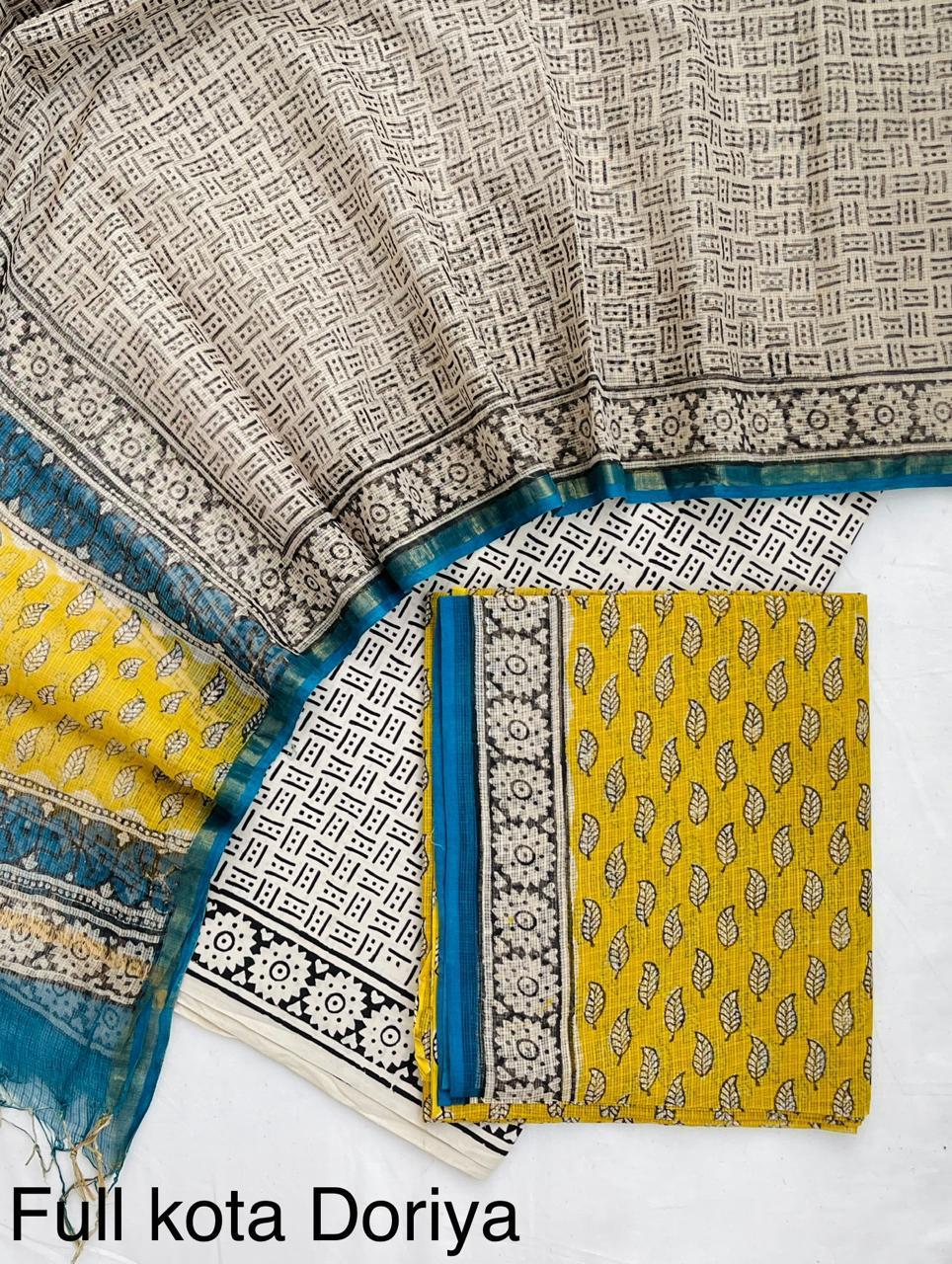 Celebrate in effortless style with this lightweight Kota Doria suit, perfect for women during festive occasions. Made from traditional Kota Doria fabric, its characteristic open-weave ensures excellent breathability, keeping you comfortable even during prolonged wear in warmer weather. While "festive wear" usually implies rich designs, this suit balances lightness with celebratory prints. The prints typically include delicate traditional motifs, small paisleys, or subtle floral patterns often enhanced with light zari work or tasteful borders that add a touch of sparkle without making the suit heavy. This ensemble offers a refreshing alternative for those who prefer ease of movement while still looking elegant during festivities.