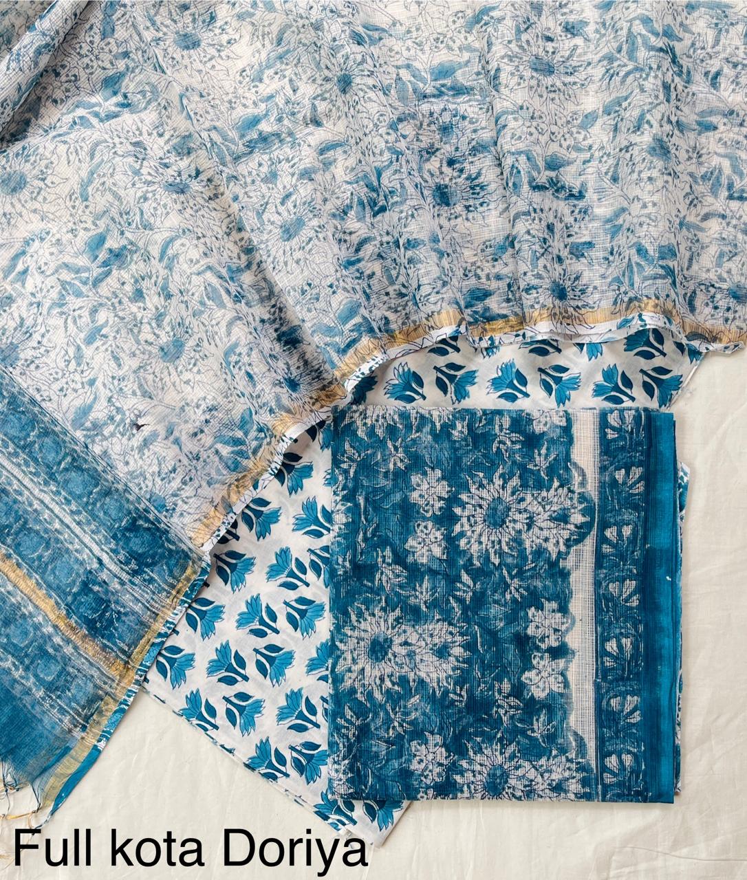 Celebrate in comfort with this lightweight Kota Doria suit, perfect for festive occasions. Made from traditional Kota Doria fabric, its characteristic open-weave ensures excellent breathability, keeping you comfortable even during prolonged wear in warmer weather. While "festive wear" usually implies rich designs, this suit balances lightness with celebratory prints. The prints typically include delicate traditional motifs, small paisleys, or subtle floral patterns often enhanced with light zari work or tasteful borders that add a touch of sparkle without making the suit heavy. This ensemble offers a refreshing alternative for those who prefer ease of movement while still looking elegant during festivities.