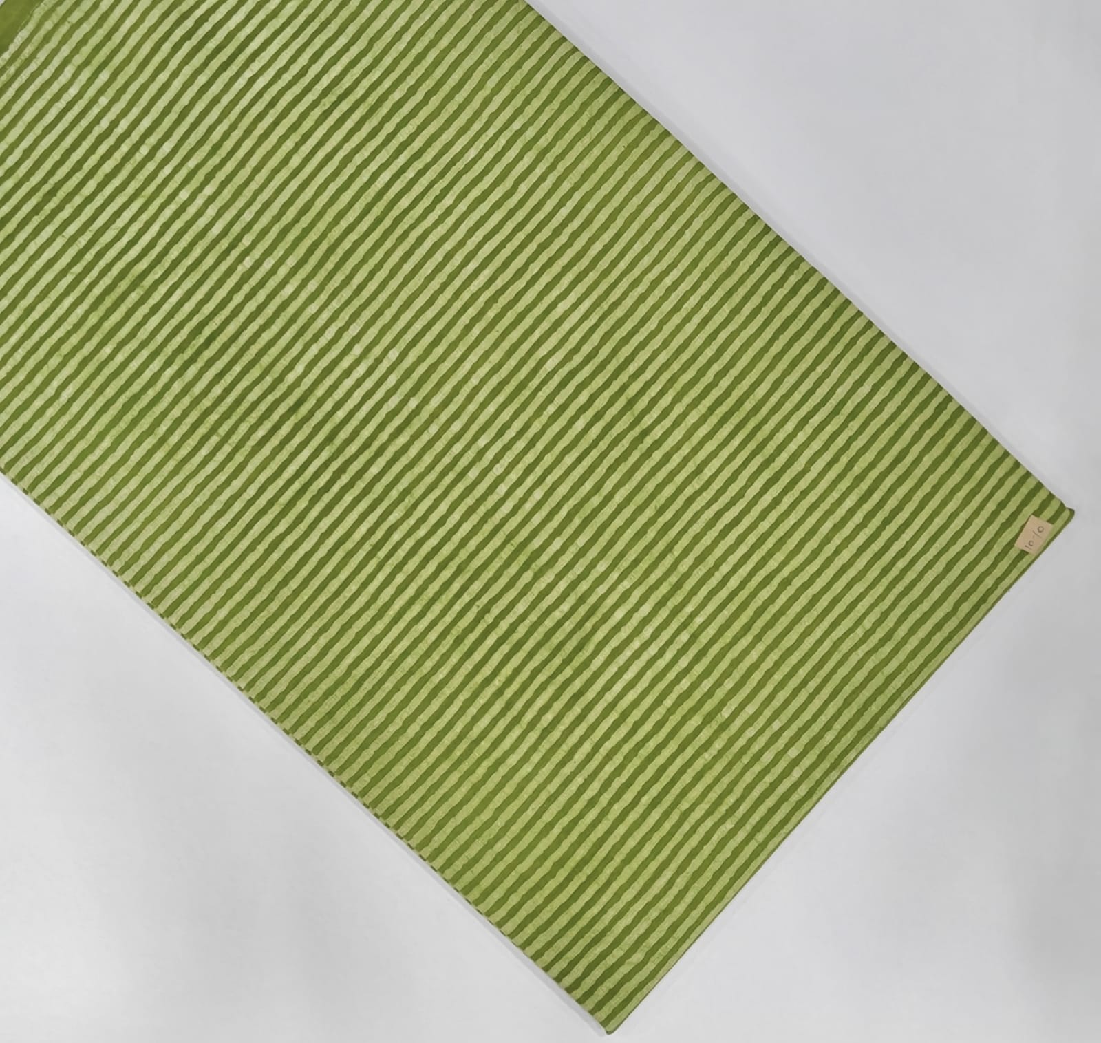 Infuse your creations with the vivacious spirit of our Lime Gradient Striped Dabu Cotton Running Fabric. Hand block printed with a meticulous eye for detail, this piece showcases lively hues that seamlessly flow into one another, creating a refreshing canvas for your next project.