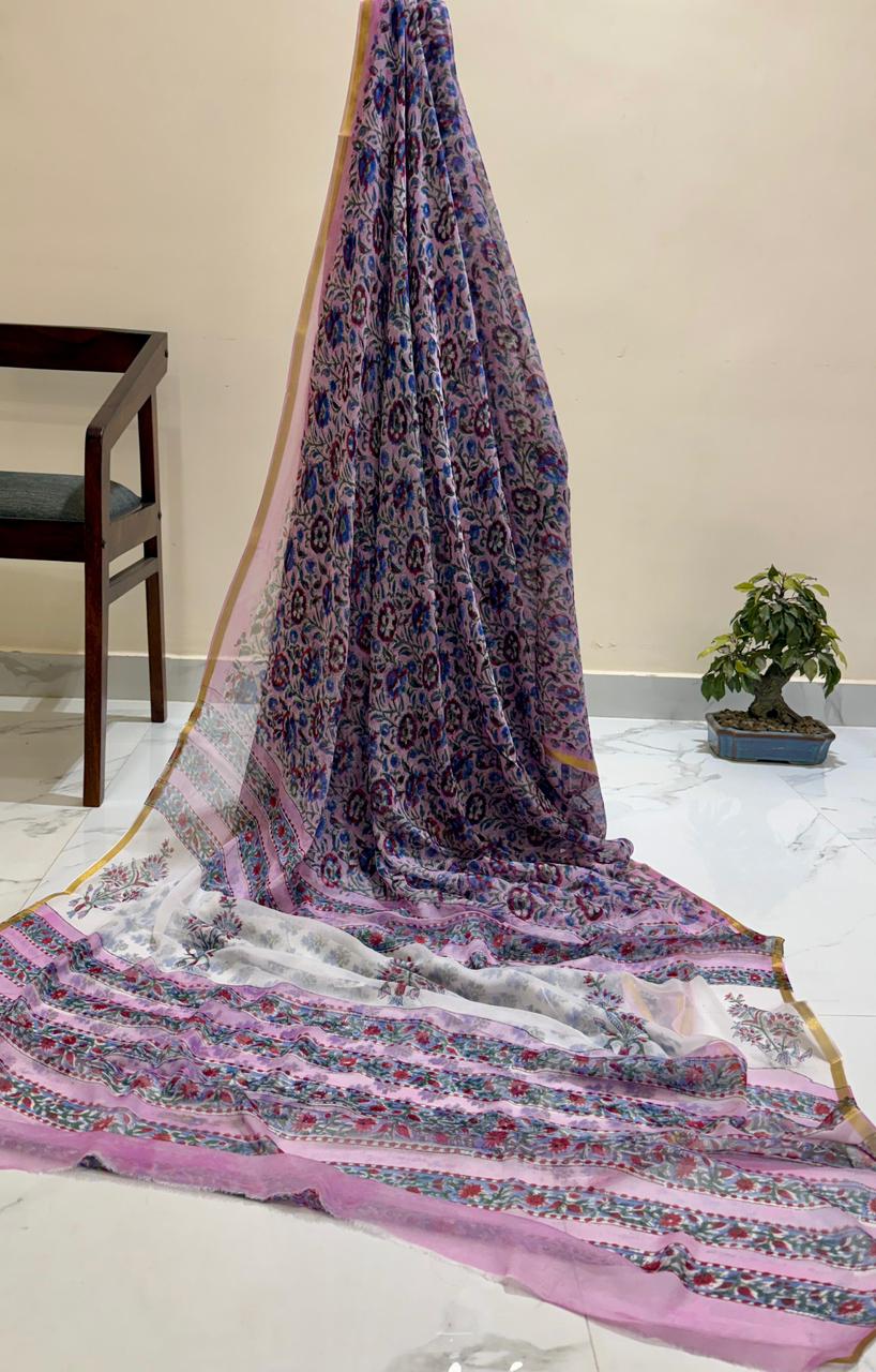 Exclusive Premium Handblock Printed Pure Double Diamond Chiffon Sarees