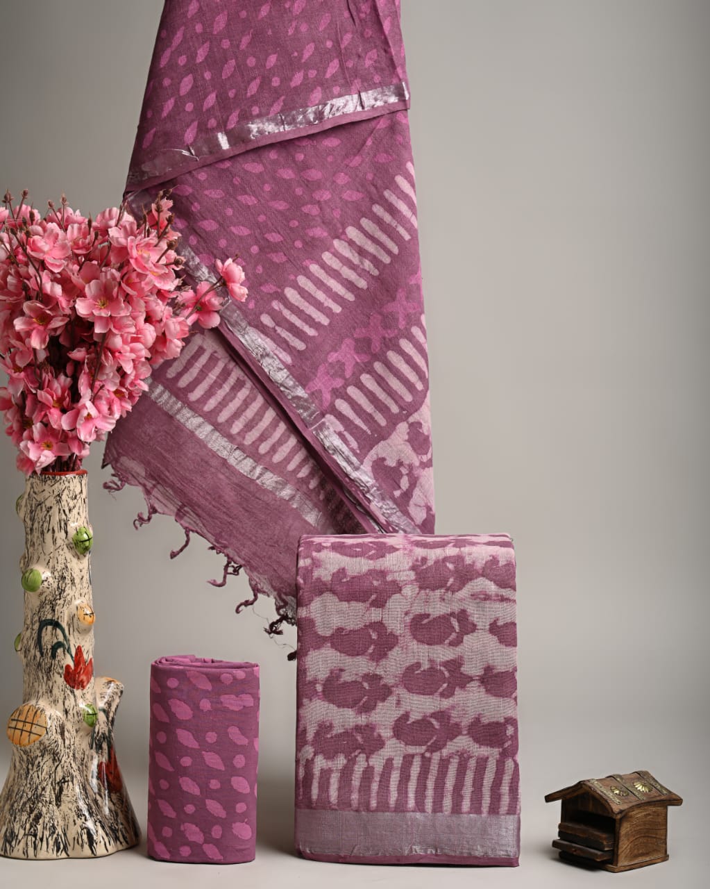 Mauve Blossom Hand Block Linen Cotton Suit Set