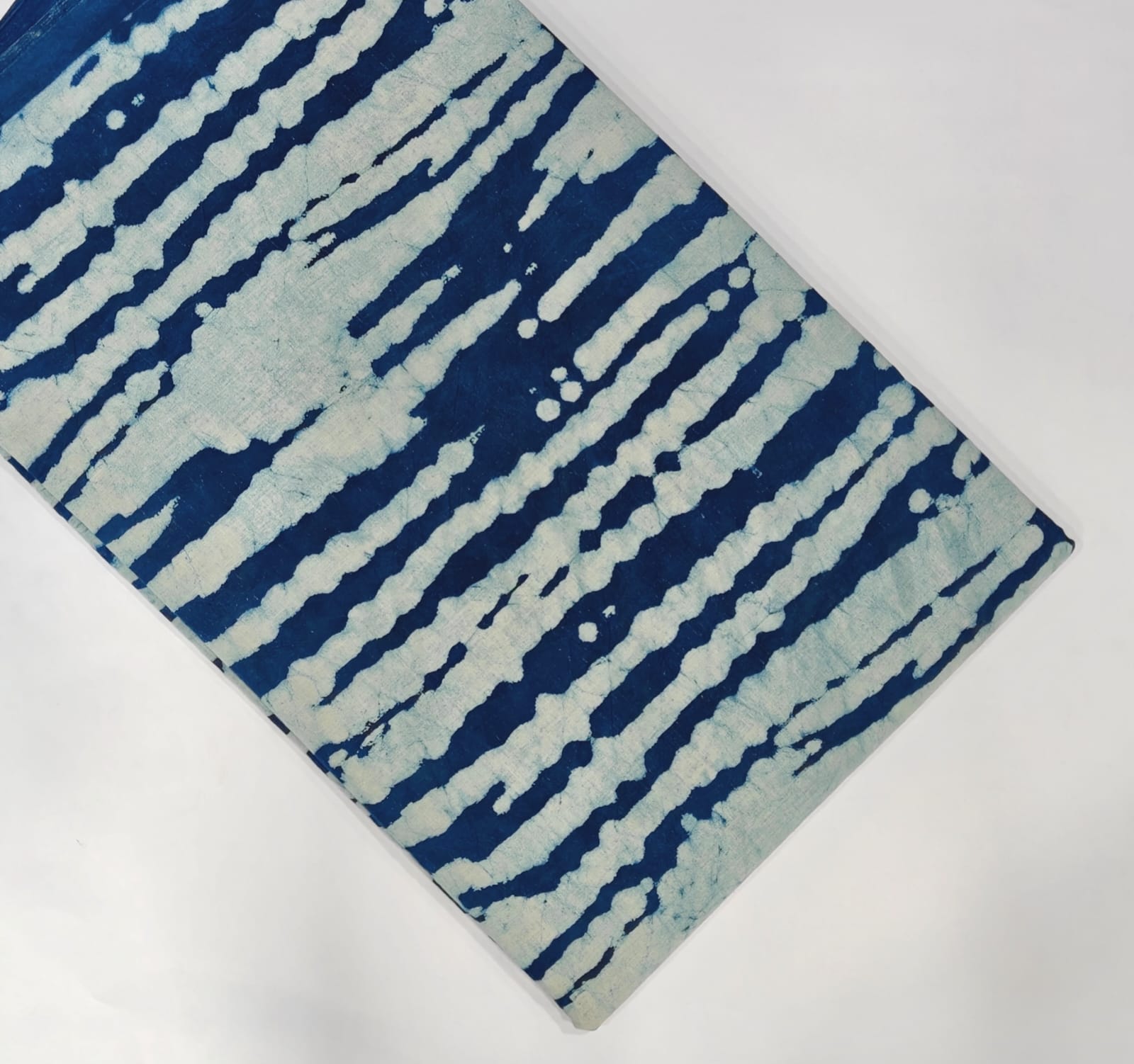 Inspired by the tranquil depths of night, this Midnight Flow Abstract Dabu Cotton Running Fabric captures a serene elegance. The interplay of deep navy and soft sky blue creates a canvas that breathes life into your creative expressions. Each inch of this fabric reflects the meticulous artistry of traditional Bagru block printing, showcasing a unique design that flows freely, inviting your imagination to wander.
