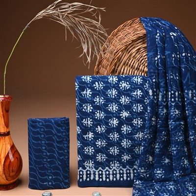 Designed for those who appreciate the beauty of tradition, this 3-piece dress material invites you to explore a world of styling possibilities. Wear it with statement jewelry for a festive look or keep it simple for a sophisticated everyday ensemble. Each piece tells a story of heritage, craftsmanship, and style, waiting for you to make it your own.