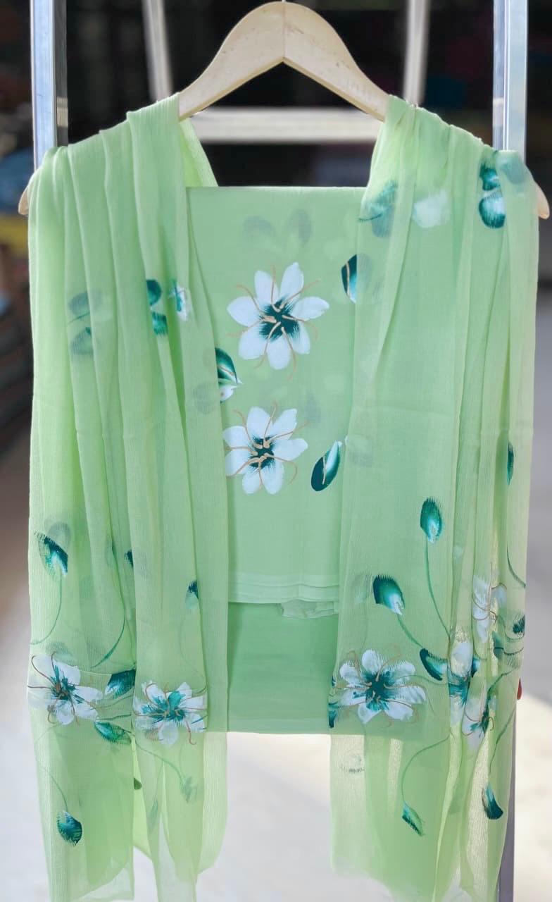 Why not refresh your wardrobe with this exquisite piece of Indian craftsmanship? Let the Mint Floral Breeze suit set transform your look and resonate with the beauty of nature, all while showcasing your appreciation for authentic artistry.