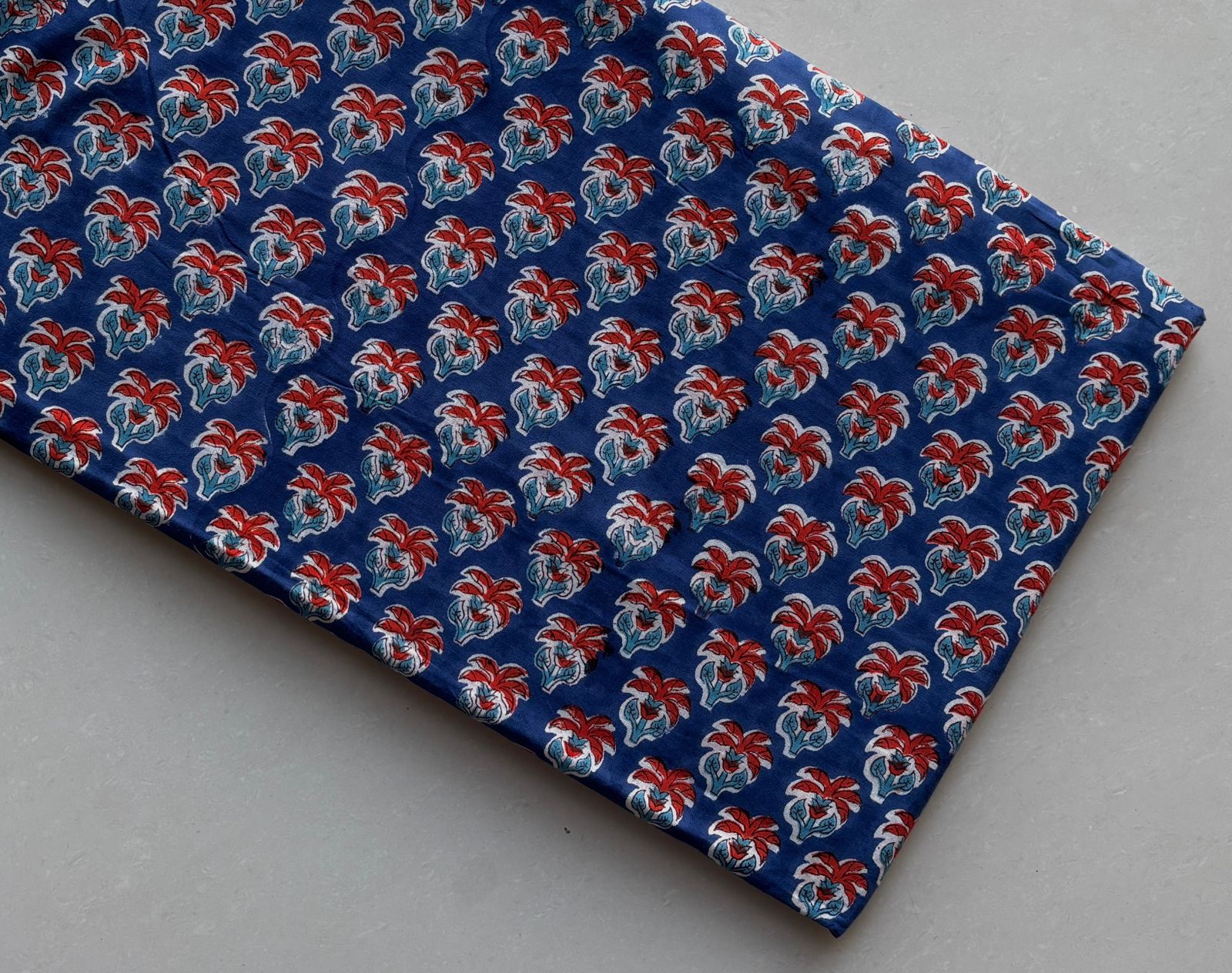 Delve into the enchanting world of our Navy Crimson Floral Cotton Running Fabric, where each thread tells a story steeped in tradition. This vibrant textile is a testament to the exquisite craftsmanship of Indian artisans, capturing the allure of floral motifs against a deep navy backdrop.