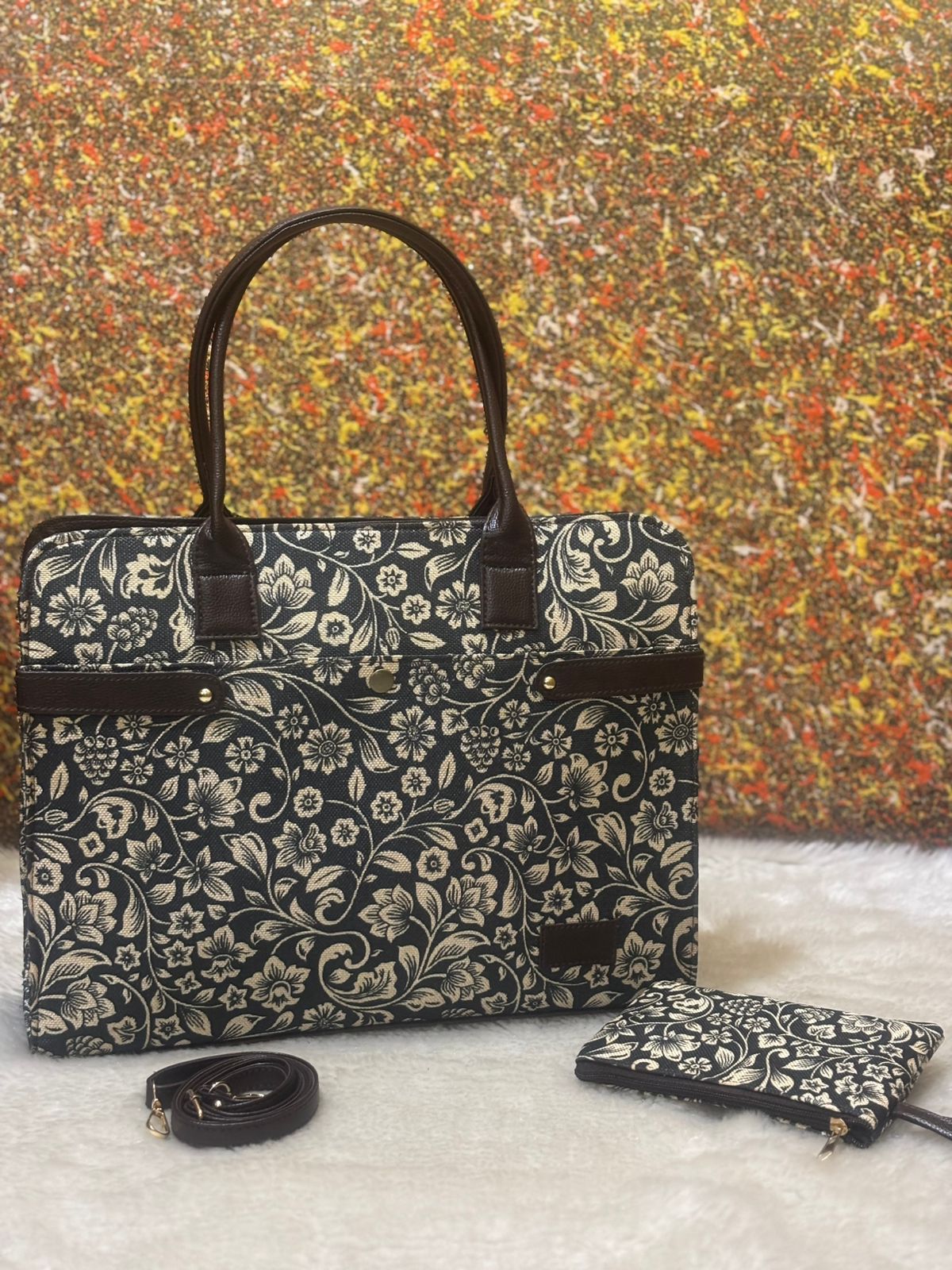 Embrace the essence of modern practicality while celebrating rich craftsmanship with the Navy Floral Harmony Canvas Work Tote. It’s more than just a bag; it’s a piece of art woven into your daily life.