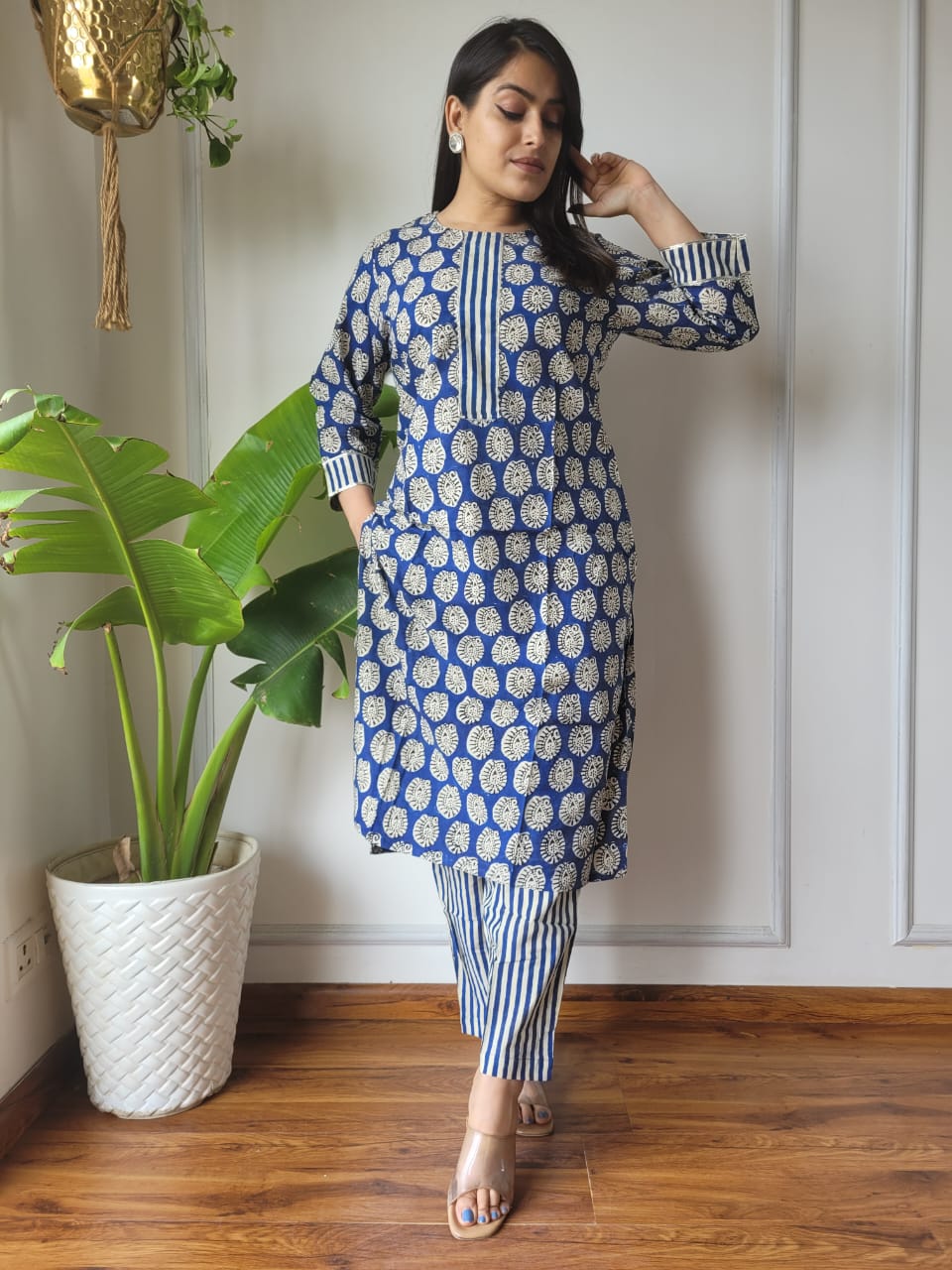 To keep your ensemble looking vibrant, we recommend a gentle cold wash and line drying, preserving the intricate details of the block prints.
