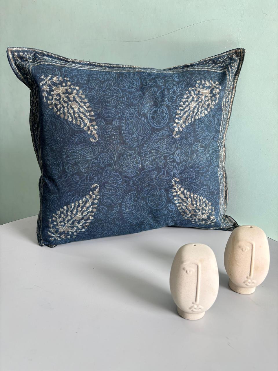 Crafted with an eye for detail, these cushion covers showcase a stunning paisley design against a deep navy backdrop. Each piece is a celebration of traditional Indian artistry, reflecting the skill and passion of the artisans. The intricate motifs dance across the fabric, bringing a sense of elegance and warmth to your living space.