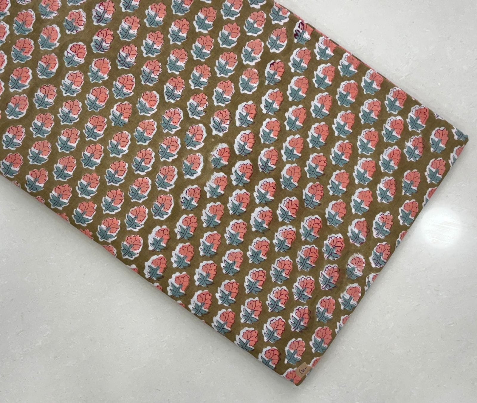 Crafted with meticulous care, our Olive Coral Floral Artisan Cotton Running Fabric invites you to explore a vibrant interplay of tones. The earthy olive green backdrop harmonizes beautifully with soft coral motifs, creating a fabric that feels both lively and grounded.