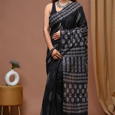 • Saree: Hand block printed mulmul cotton saree 5.5 meters (92*80 super dying quality)