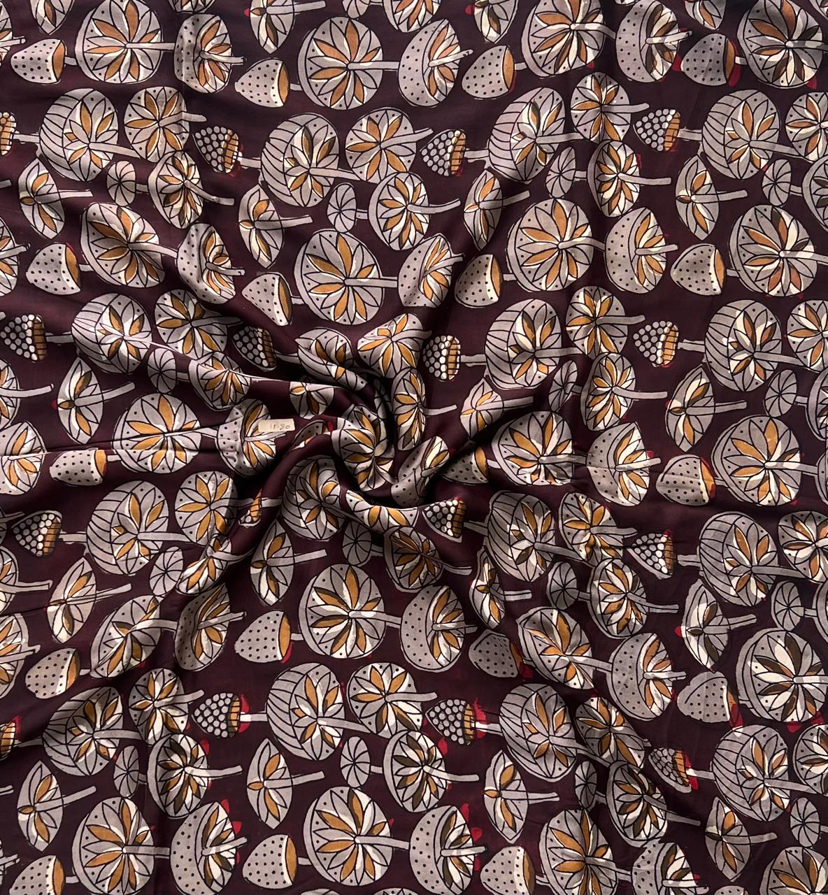 Once upon a time, artisans poured their heart into every stroke, crafting a fabric that tells stories of nature and heritage. Our Plum Floral Whispers fabric is a delightful tribute to traditional Indian craftsmanship, where each floral motif blooms across a deep burgundy canvas, embodying the spirit of the earth.