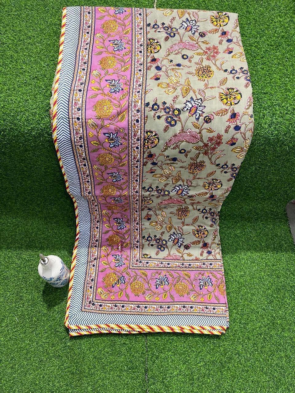 Caring for your dohar is simple; just machine wash on a gentle cycle and line dry to maintain its vibrant prints and soft texture.