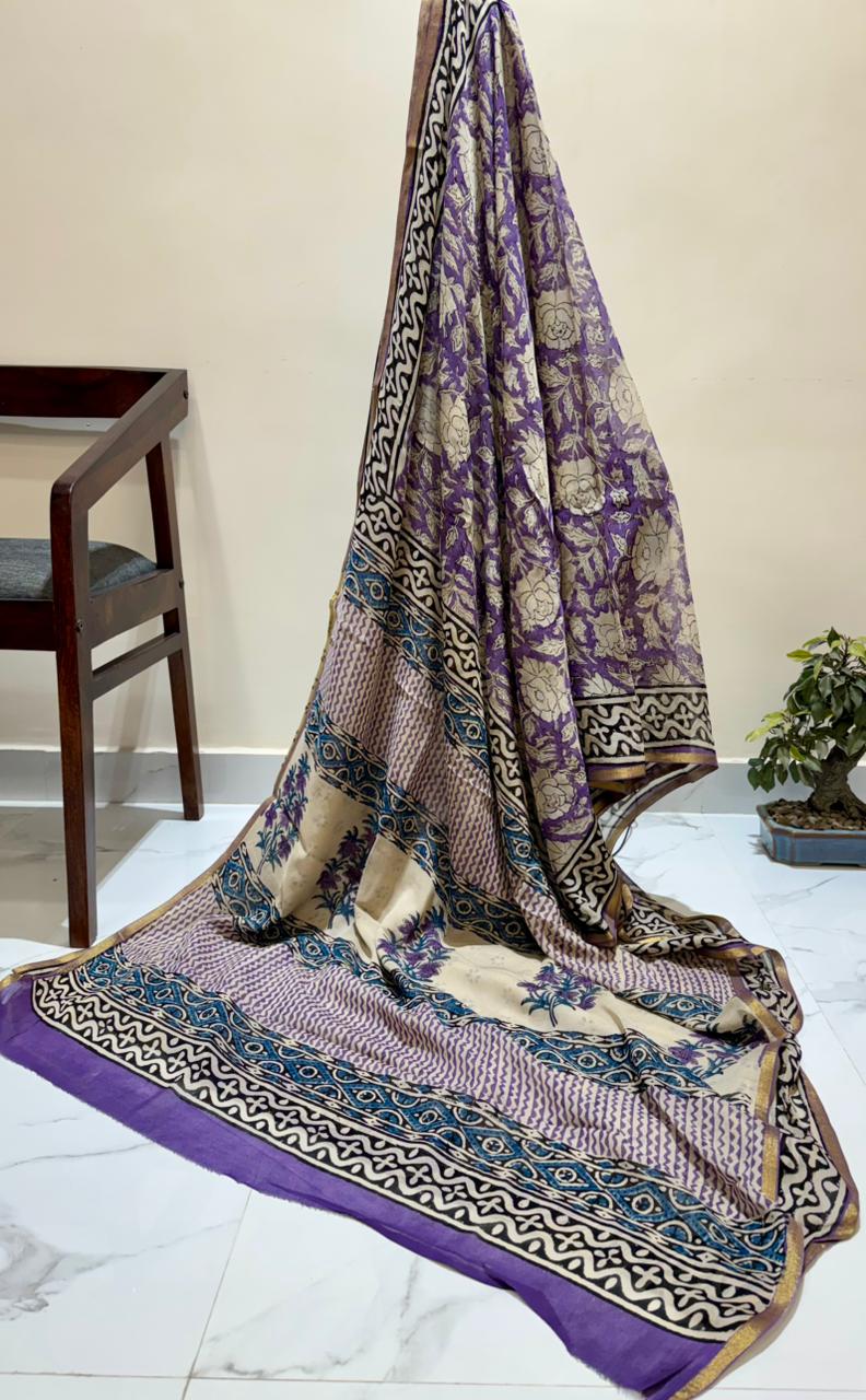 Exclusive Premium Handblock Printed Pure Double Diamond Chiffon Sarees