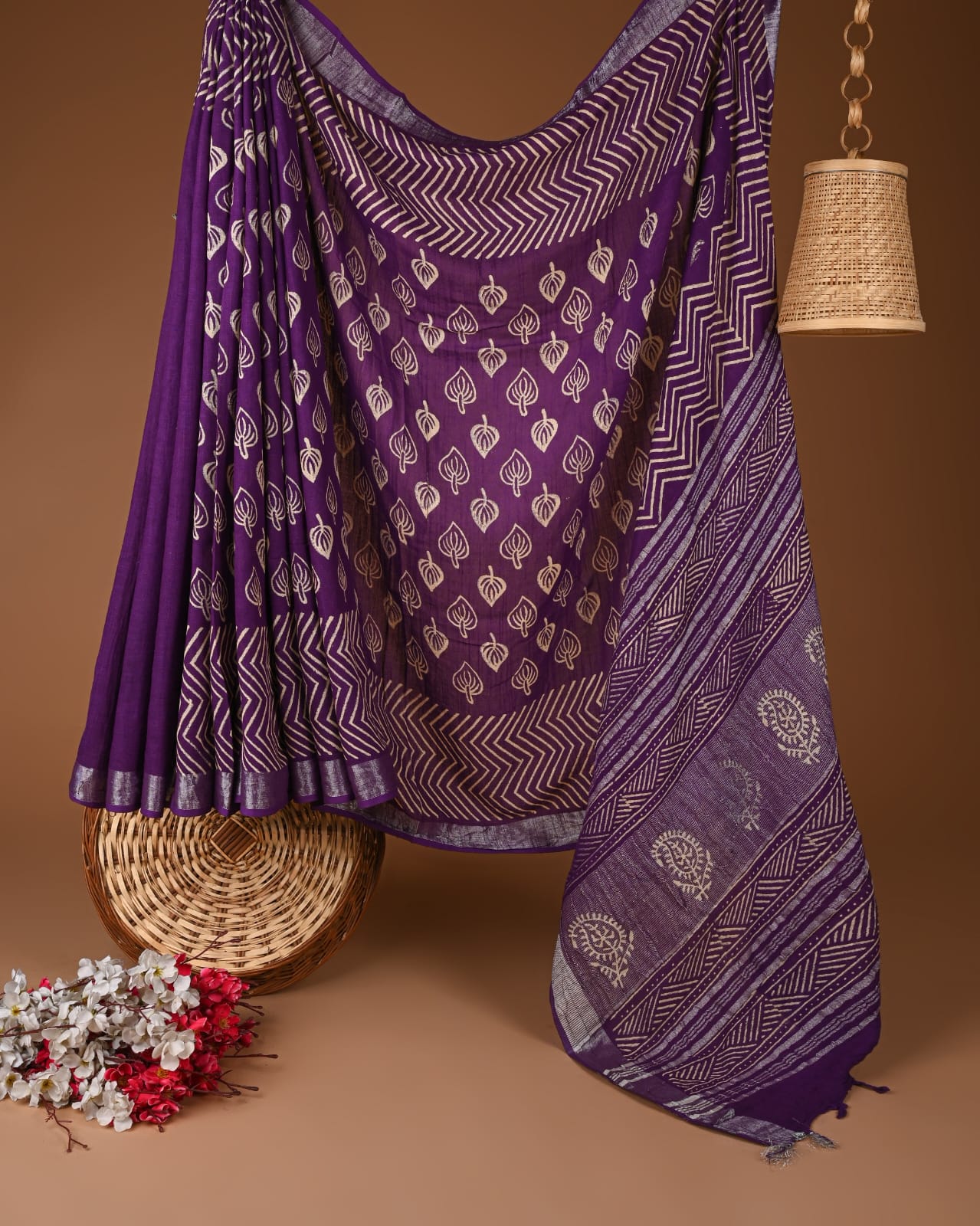 Step into a world of rich heritage with our Royal Purple Tulip Chevron Linen Saree. This exquisite piece embodies the essence of traditional Indian craftsmanship, showcasing a harmonious blend of bold purple and delicate ivory patterns. Each intricate design is meticulously crafted using authentic hand block printing techniques, ensuring that no two pieces are alike. The chevron and tulip motifs create a captivating visual rhythm, perfect for refreshing your wardrobe.