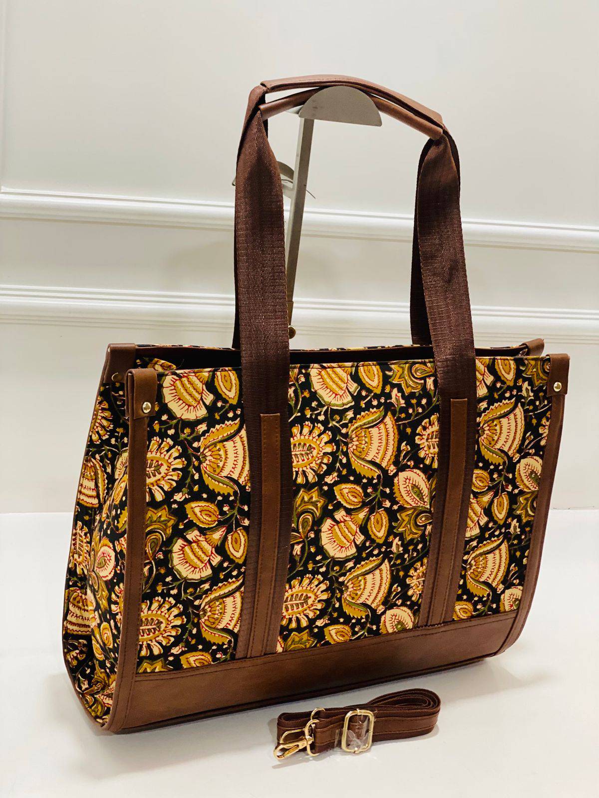 Designed for both beauty and practicality, this bag is carefully made for lasting wear, featuring a structured body that maintains its shape and a detachable strap for versatility. Its unique blend of floral patterns and durable leather accents enhances its aesthetic appeal, making it a delightful companion for various occasions.