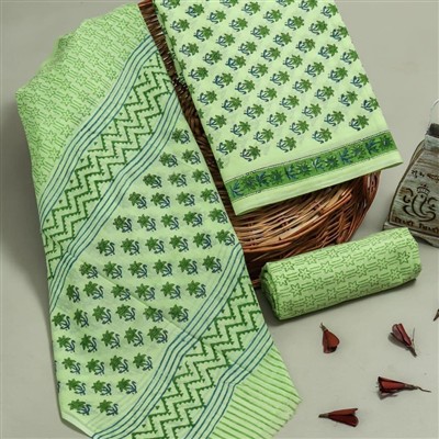 Hand block printed cotton suit with cotton duptta dress material with 3 piece set