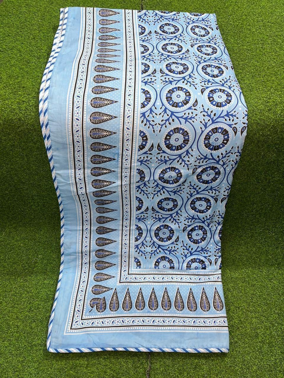 Immerse your home in the enchanting allure of our Sky Blue Floral Elegance Dohar. Each piece is inspired by the lush landscapes of India, bringing together a delicate floral motif and a fresh color palette that radiates warmth and charm. Handcrafted using traditional block printing techniques, this dohar not only provides cozy comfort but is also an exquisite addition to your decor.