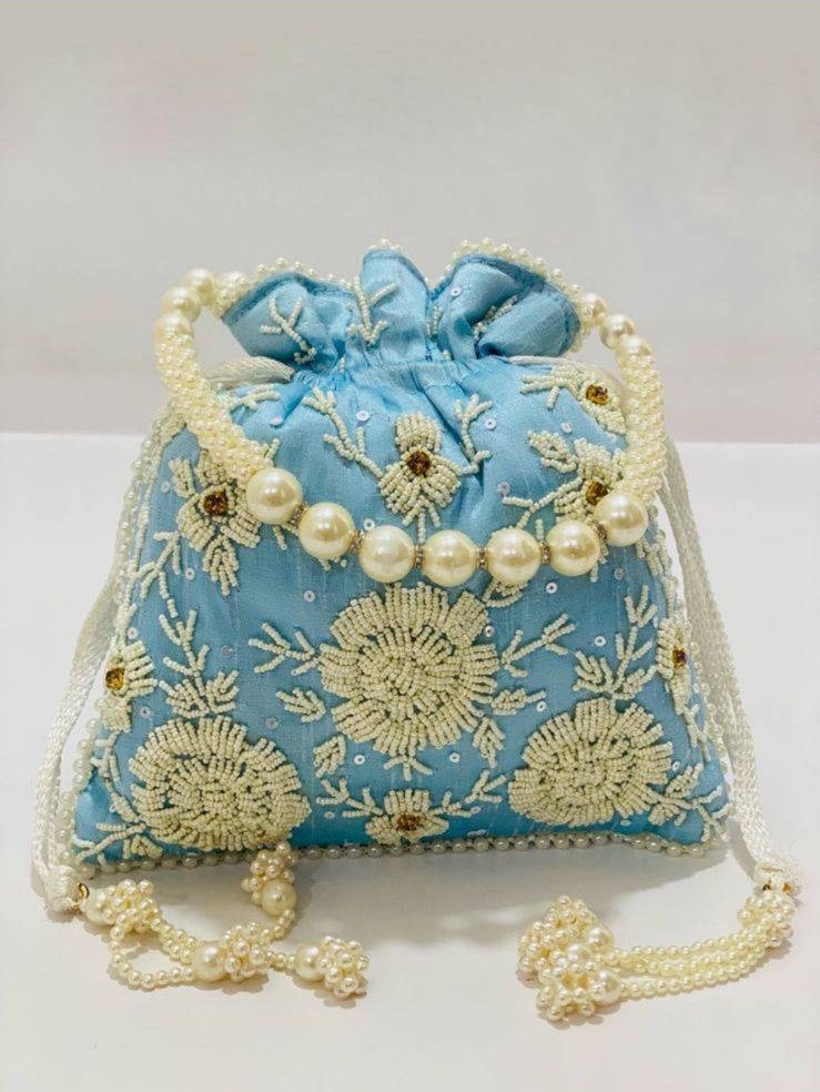 • ?Style : Drawstring (Potli) with heavy pearl handle and tassels