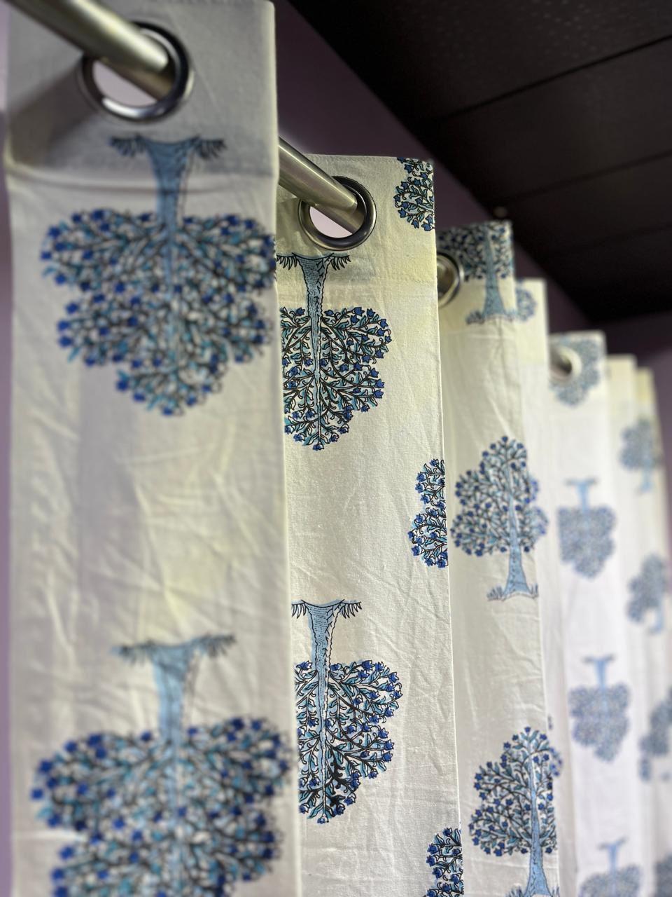 Embrace the essence of Indian artistry with our Sky Blue Heart Tree Motif Cotton Curtains. Each piece reflects a commitment to traditional hand block printing, where skilled artisans have poured their heart into creating intricate designs that breathe life into your space. The enchanting heart-shaped tree motifs dance gracefully across a crisp white backdrop, offering a touch of elegance that complements both modern and traditional interiors.