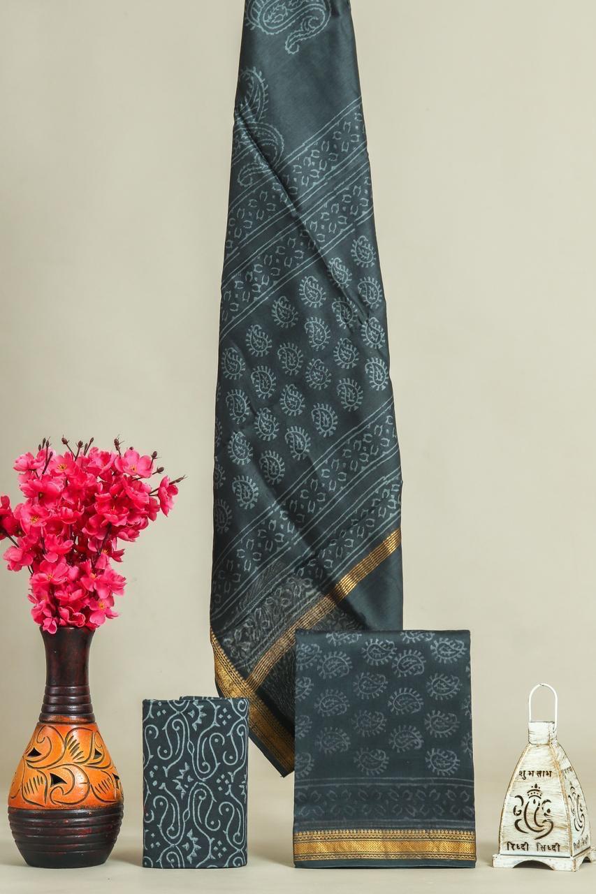 Slate Symphony Paisley Silk Ensemble for Maheshwari Silk Suits