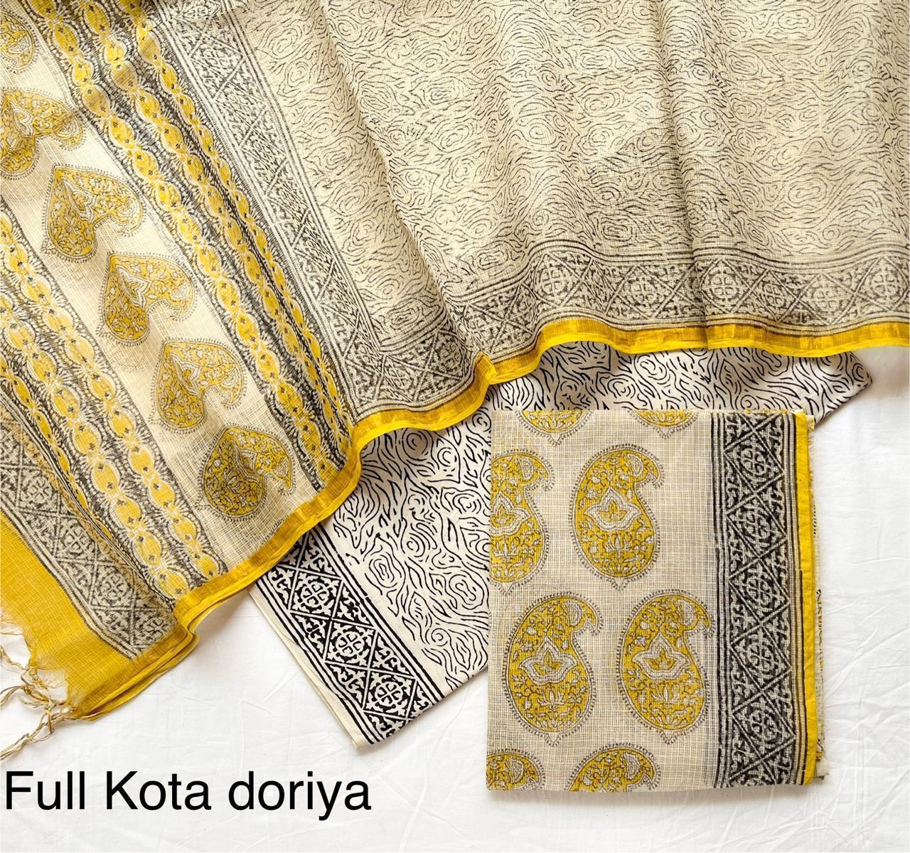 Make a grand impression with this stunning suit, crafted from luxurious Silk Kota Doria and featuring captivating prints. This fabric masterfully combines the classic lightweight, airy, and semi-transparent quality of Kota Doria with the rich drape and exquisite sheen of silk, creating a truly opulent and comfortable material. The "stunning printed" aspect highlights the eye-catching patterns that adorn the fabric. These prints can range from intricate traditional motifs, elaborate florals, or bold abstract designs, often in vibrant or sophisticated color palettes that enhance the silk's lustre. This suit is perfect for weddings, grand festive events, or any occasion where you wish to make an unforgettable statement.