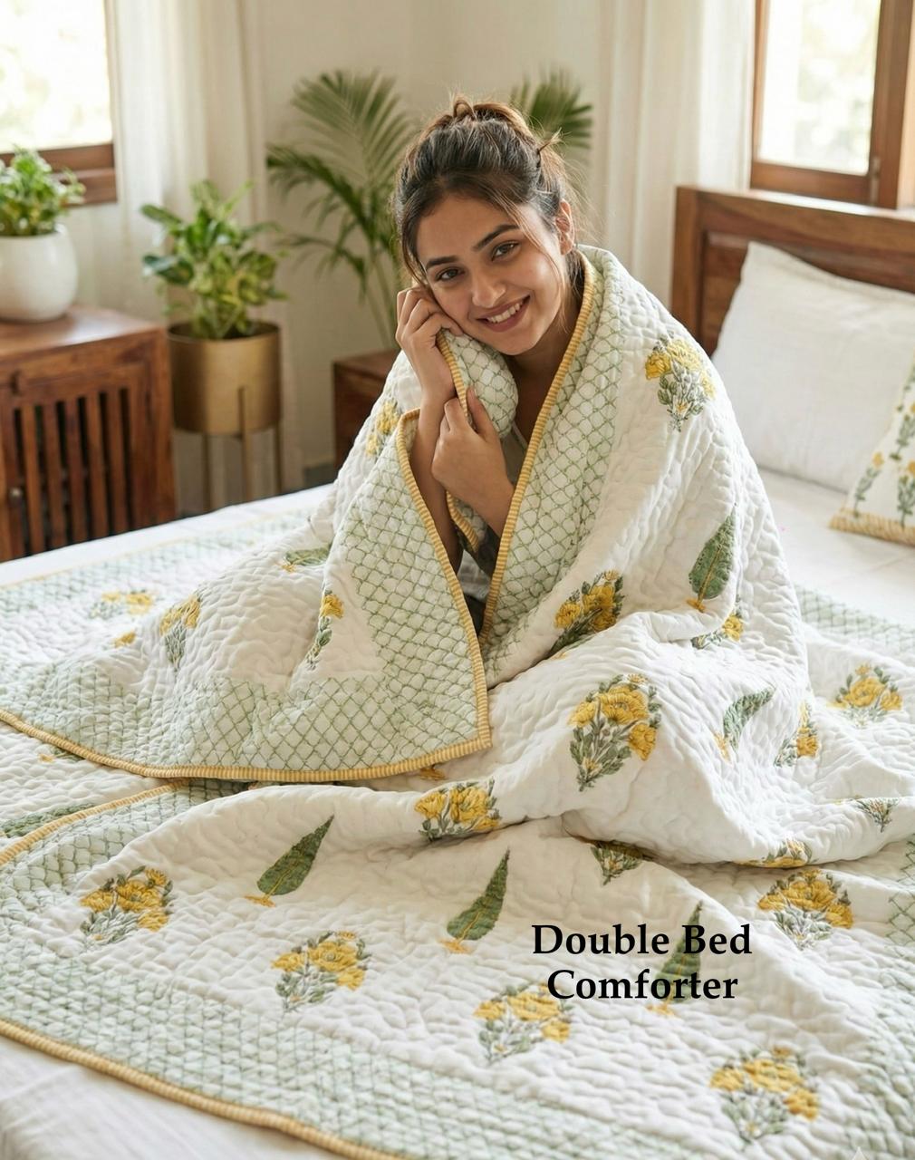 In a world that often feels rushed, finding a serene escape in your own space is essential. The Sunshine Bloom Quilted Cotton Comforter invites you to unwind and embrace comfort like never before. Crafted from soft cotton, this piece wraps you in a gentle embrace, perfect for those cozy evenings spent at home.
