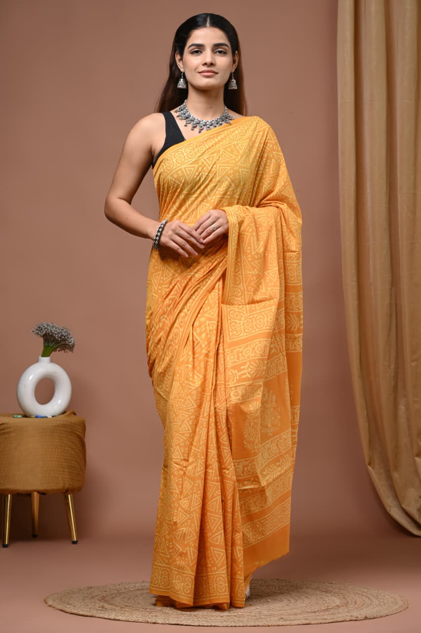 Discover the beauty of traditional Indian textiles with our hand block printed mulmul cotton saree.