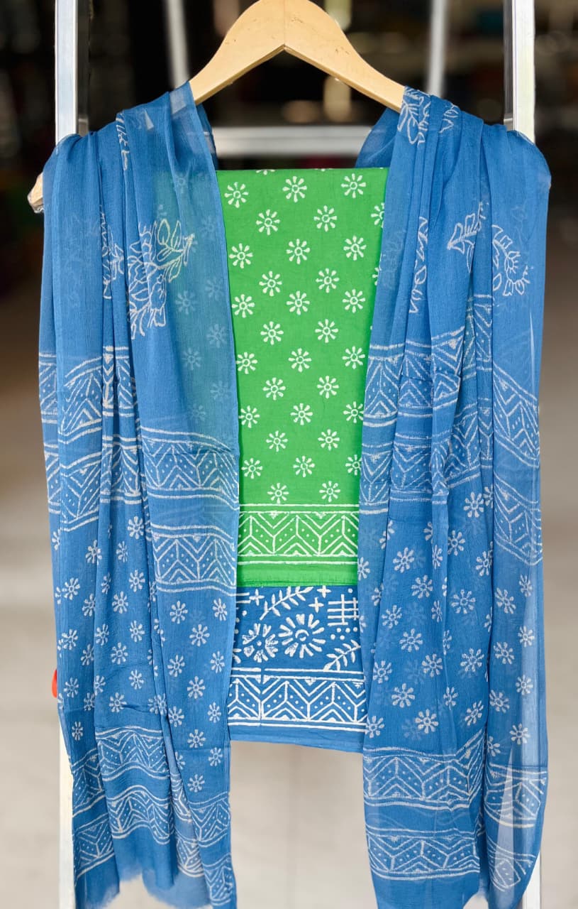 Infuse your everyday attire with a burst of color and tradition. The Teal Floral Delight Cotton Suit Set combines the artistry of hand block printing with the comfort of 100% pure cotton. Each piece, thoughtfully designed, showcases intricate floral motifs that dance across the fabric, celebrating the heritage of Indian craftsmanship.