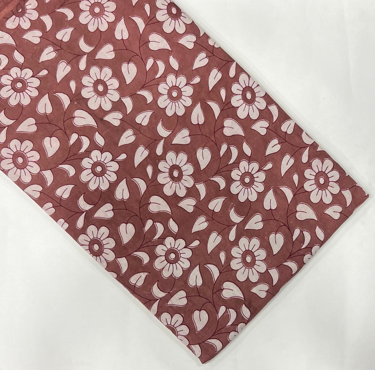 Step into a world of artisanal charm with our Terracotta Floral Elegance Cotton Running Fabric. This exquisite textile showcases a soft terracotta hue peppered with delicate white and burgundy floral motifs, evoking a sense of timeless beauty and warmth.