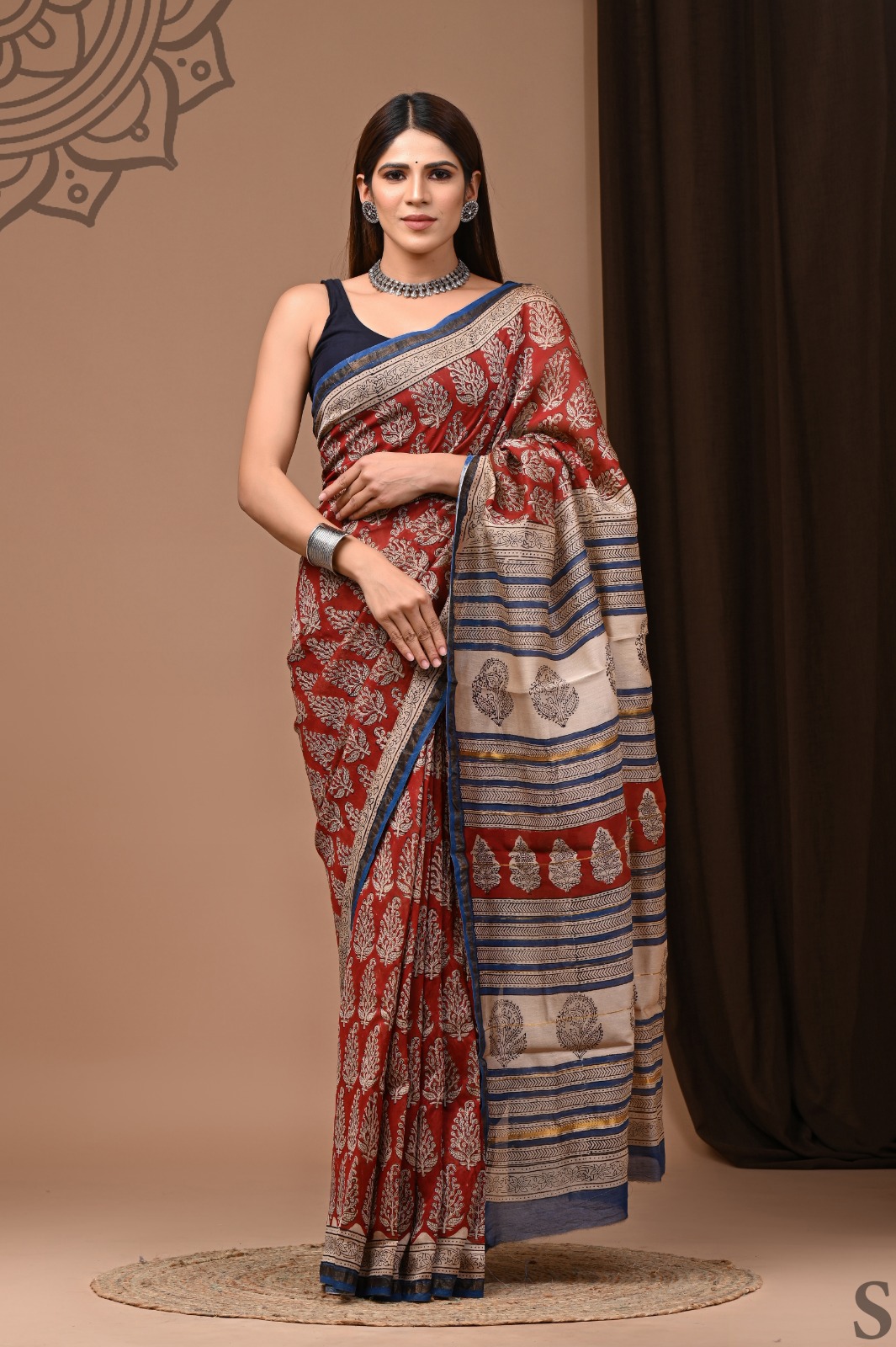 Crafted with 100% organic colors, this saree not only reflects a commitment to sustainability but also ensures a rich, vivid palette that resists fading.