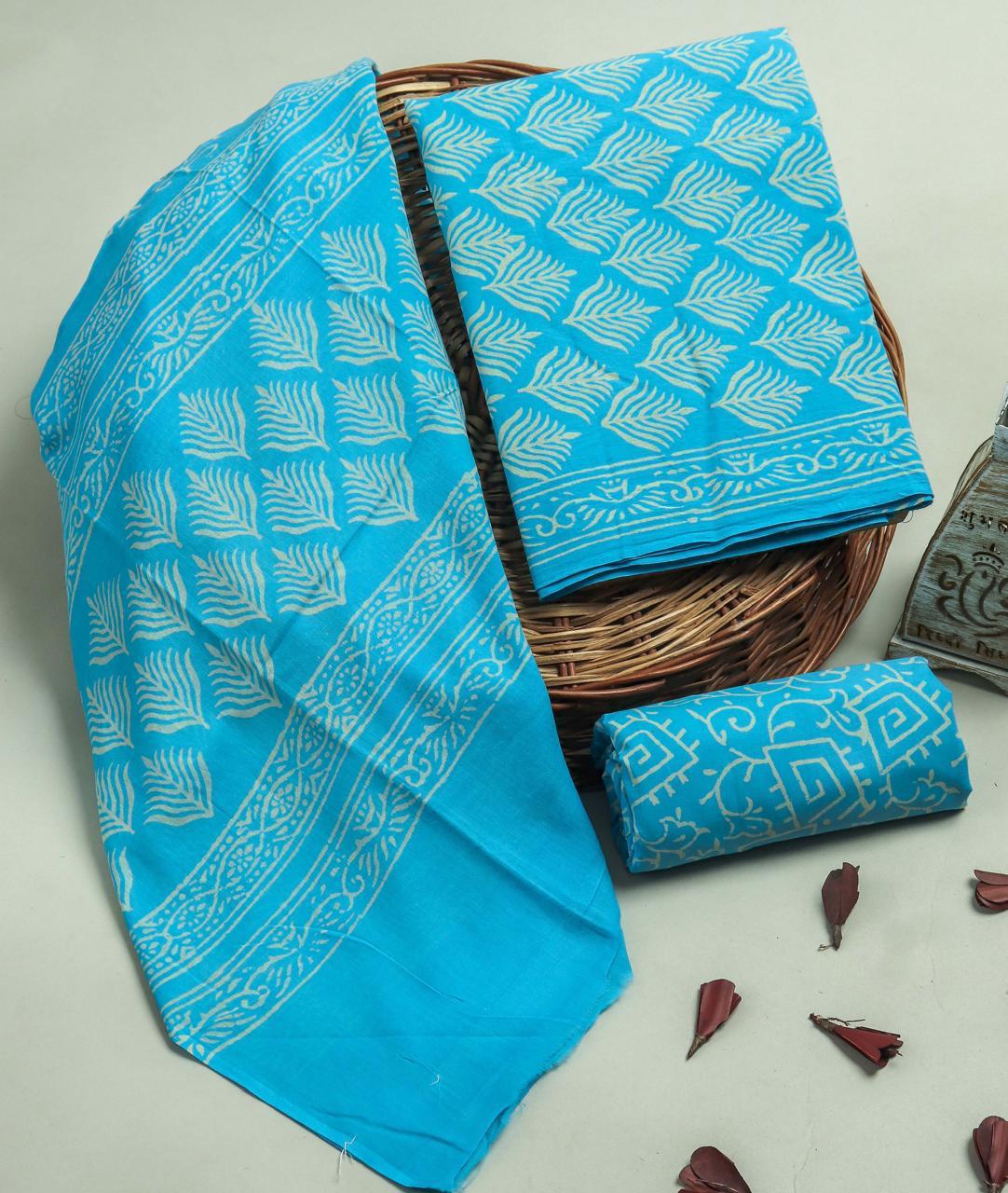 Turquoise Bliss Hand Block Printed Cotton Dress Material Set