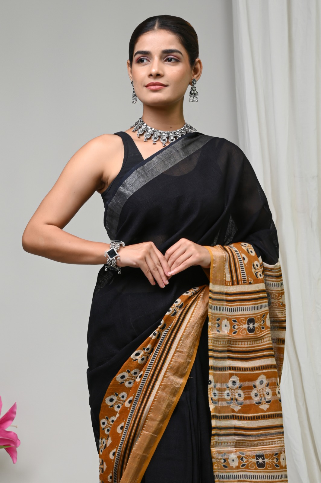 Whether you’re attending a festivity or simply looking to infuse your daily wear with a splash of elegance, this saree offers versatility that transcends seasons and occasions. The breathable linen ensures comfort in any weather, making it a staple you’ll cherish.