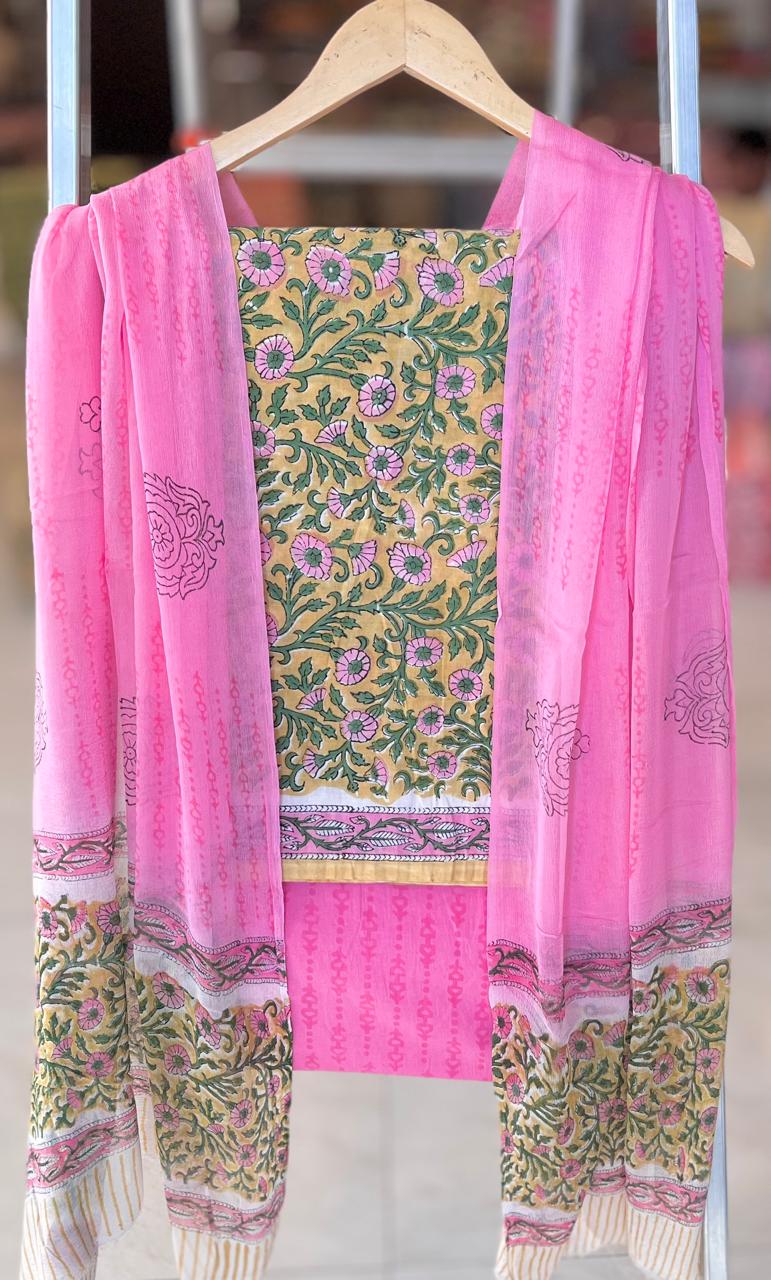 Whether you choose to accessorize with traditional jewelry or pair it with contemporary pieces, this cotton dress material promises to make a statement, reflecting the timeless charm of Indian craftsmanship.